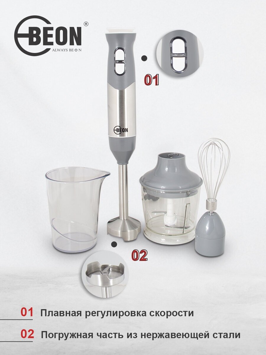 Погружной блендер Beon BN-2009, серый/серебристый