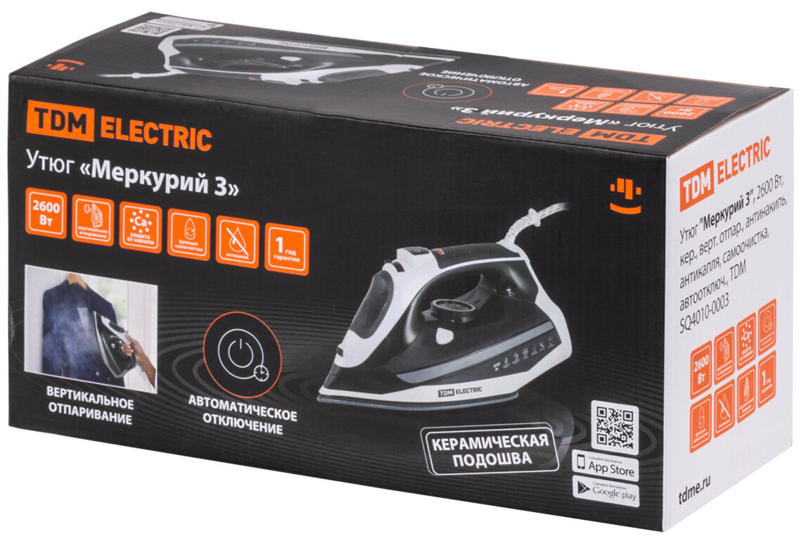 TDM Утюг Меркурий 3, 2600 Вт, кер., верт. отпар., антинакипь, антикапля, самоочистка, автоотключ.,