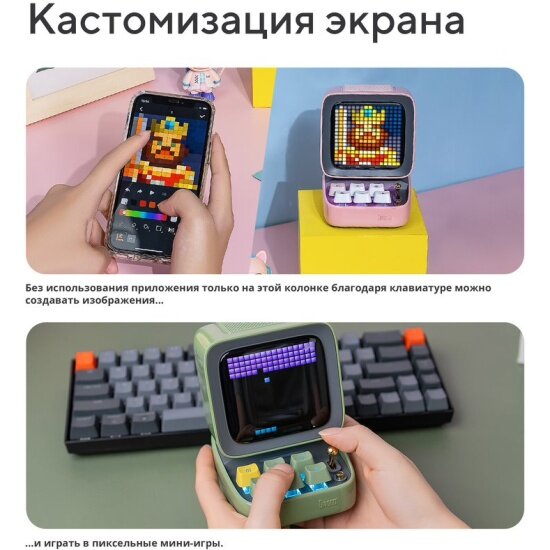 Колонка Divoom портативная Ditoo-Pro Retro Pixel Art с пиксельным LED-экраном (Pink)