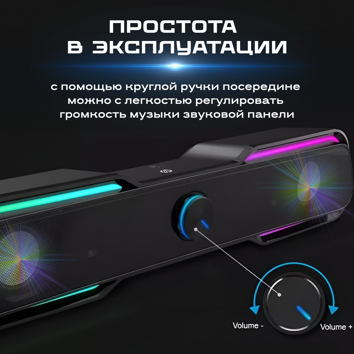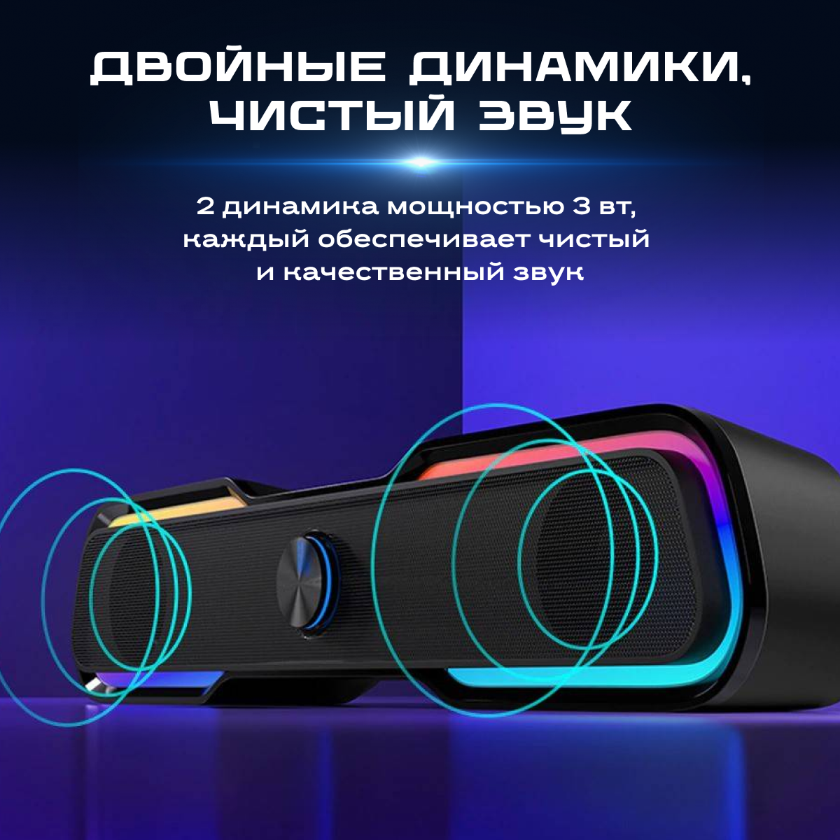 Настольный саундбар HP DHE6002, компьютерная игровая колонка для геймеров, акустическая система ( черный, 3.5 мм, USB, RGB подсветка, монолитовый матовый пластик, прорезиненные ножки)