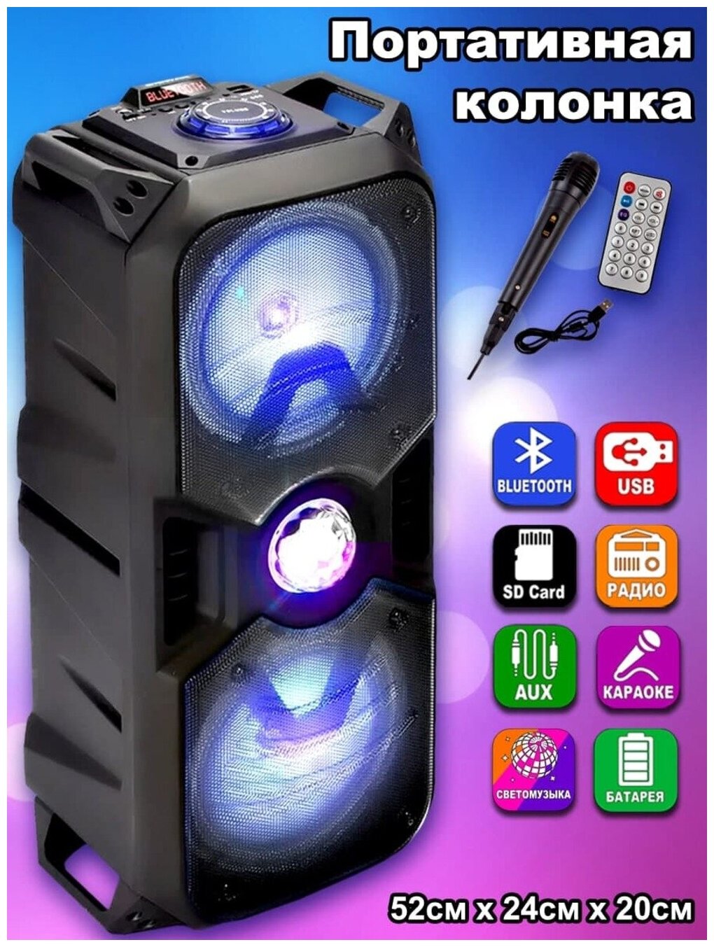 Портативная колонка bluetooth zqs 4239 с пультом ДУ и микрофоном