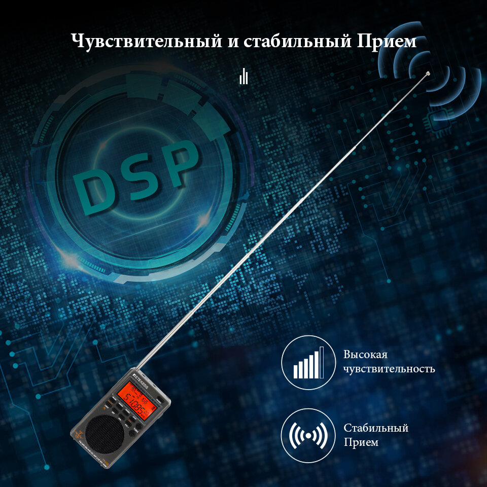 | Плюсы: | Миниатюрный, невероятно лёгкий, высокая чувствительность, множество функций, очень широкий диапазон принимаемых сигналов. Длинная антенна. |