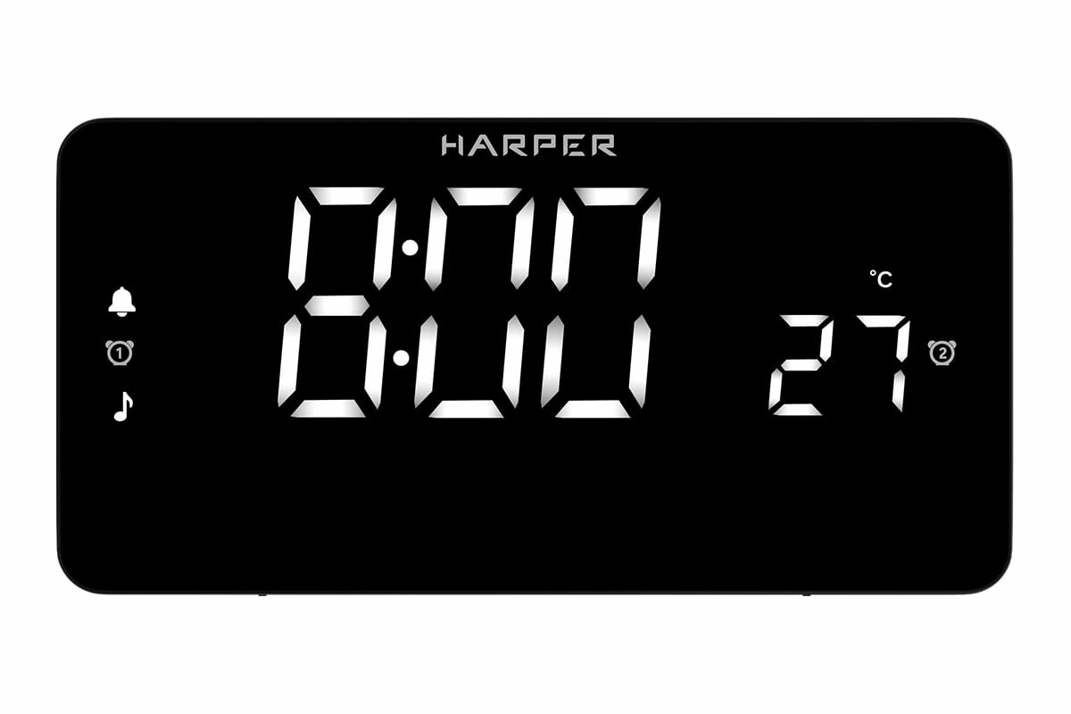 Радиобудильник с термометром и подсветкой HARPER HCLK-5030, черный корпус/черный перед/белая индикация интересное: