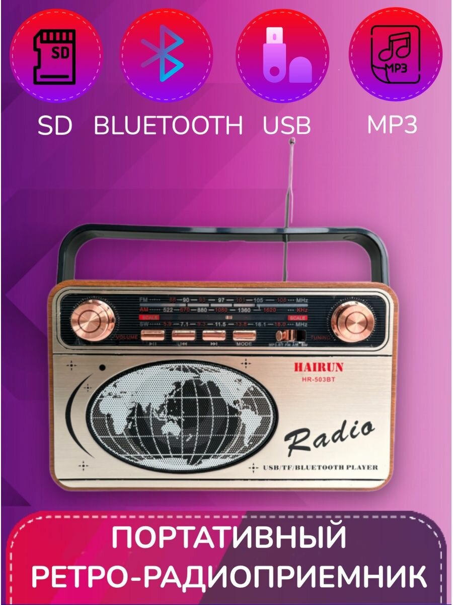 Портативный радиоприёмник, радио AM, FM радио-HR-503BT интересное: