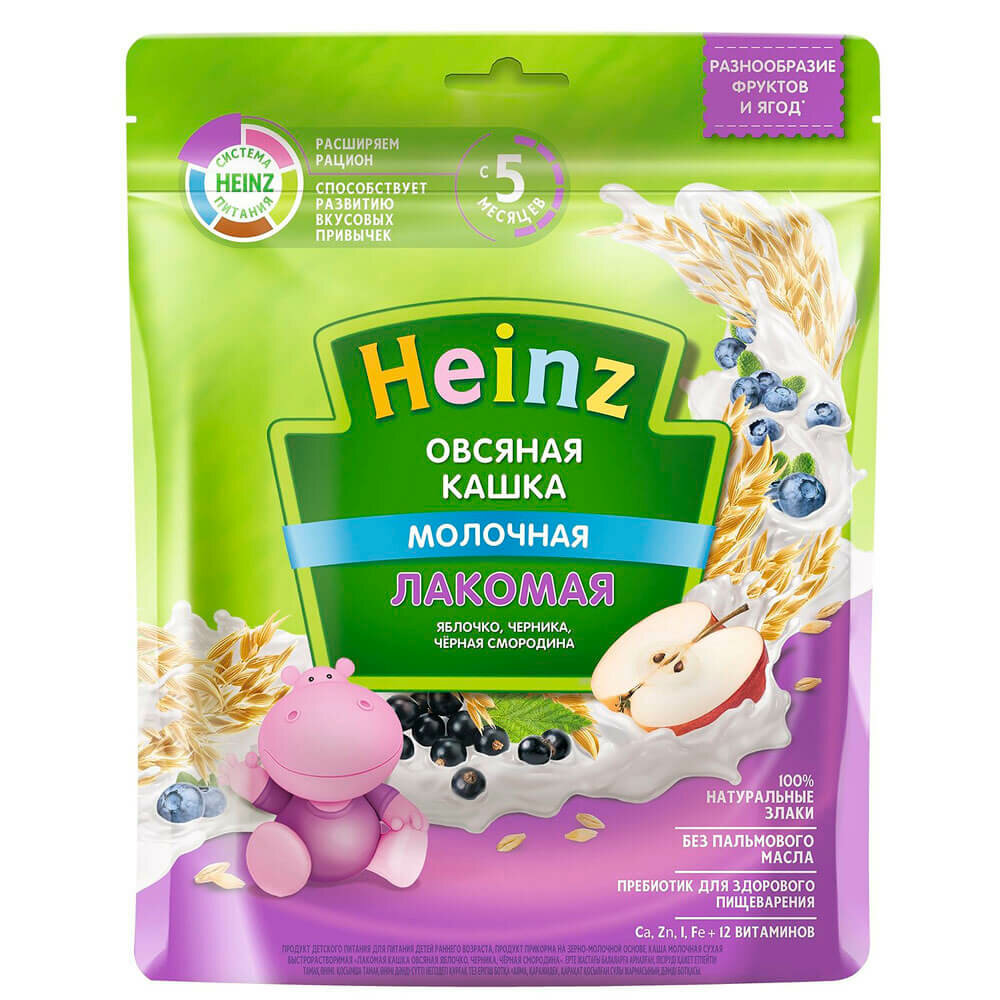 HEINZ лакомая Кашка Овсяная Яблочко, Черничка, Ч.Смородина с Молоком {с 5 мес} Doy Pack 170г.