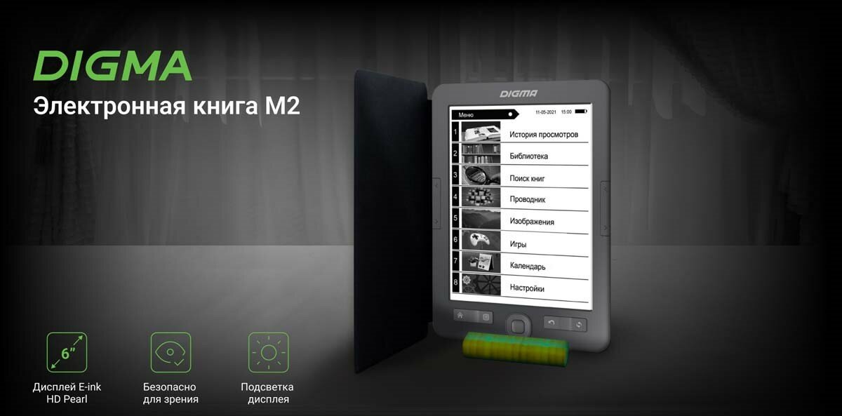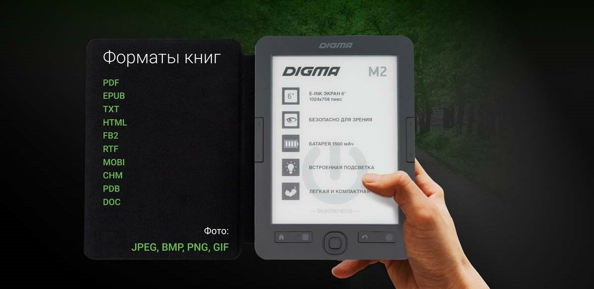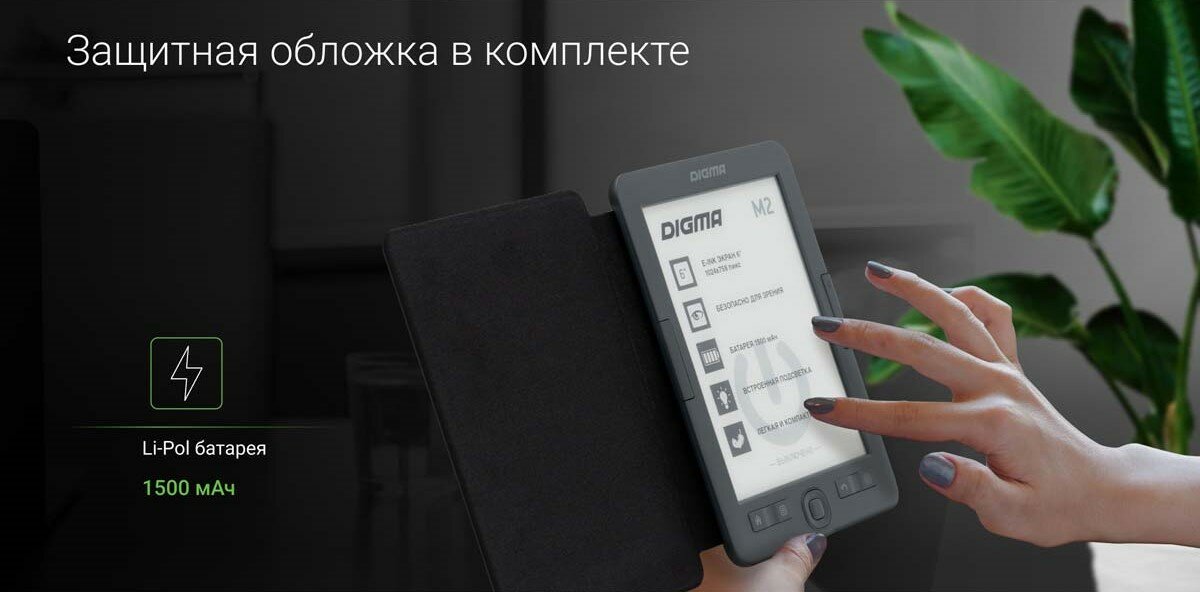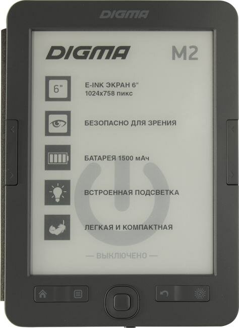 Ниже Вы можете прочитать отзывы на Электронная книга Digma M2 6" E-ink HD 758x1024 600MHz 128Mb/4Gb/SD/microSDHC/подсветка дисплея темно-серый (в компл.:обложка), ознакомится с подробными характеристиками, посмотреть интересные обзоры и фотографии на Электронная книга Digma M2 6" E-ink HD 758x1024 600MHz 128Mb/4Gb/SD/microSDHC/подсветка дисплея темно-серый (в компл.:обложка).
