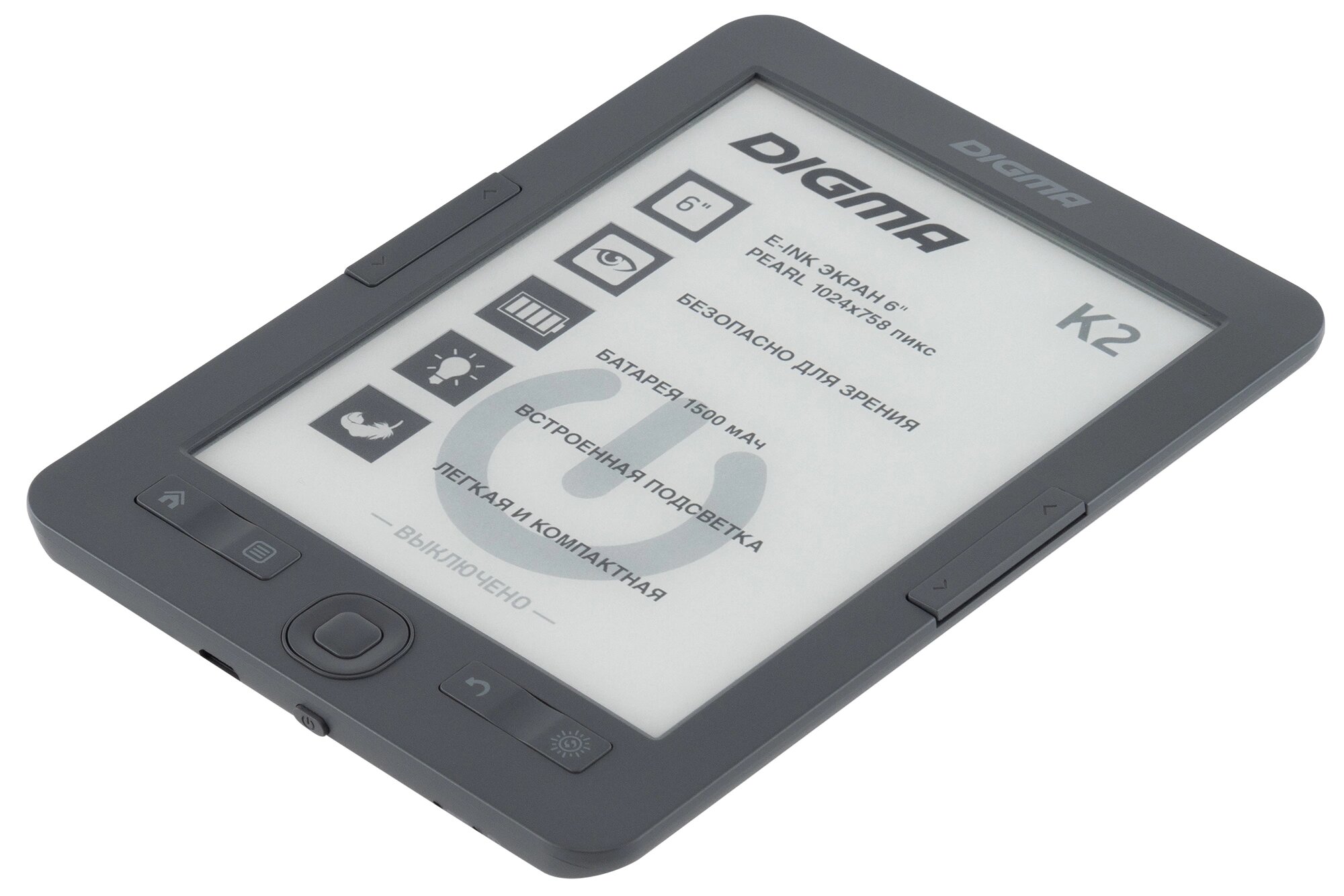 Купить Электронная книга Digma K2 6" E-ink HD Pearl 758x1024 600MHz/4Gb/microSDHC/подсветка дисплея темно-серый
