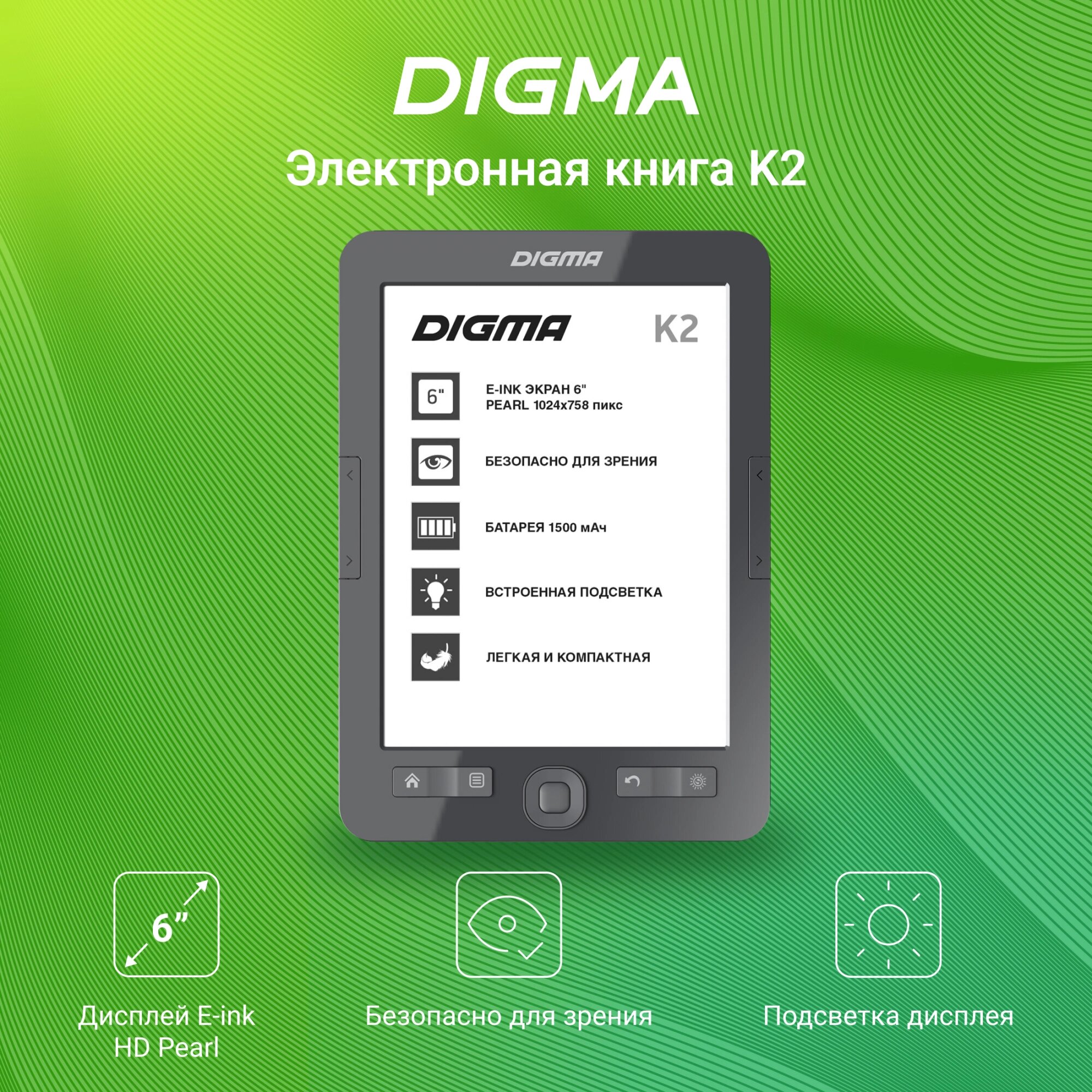 Электронная книга Digma K2 6" E-ink HD Pearl 758x1024 600MHz/4Gb/microSDHC/подсветка дисплея темно-серый интересное: