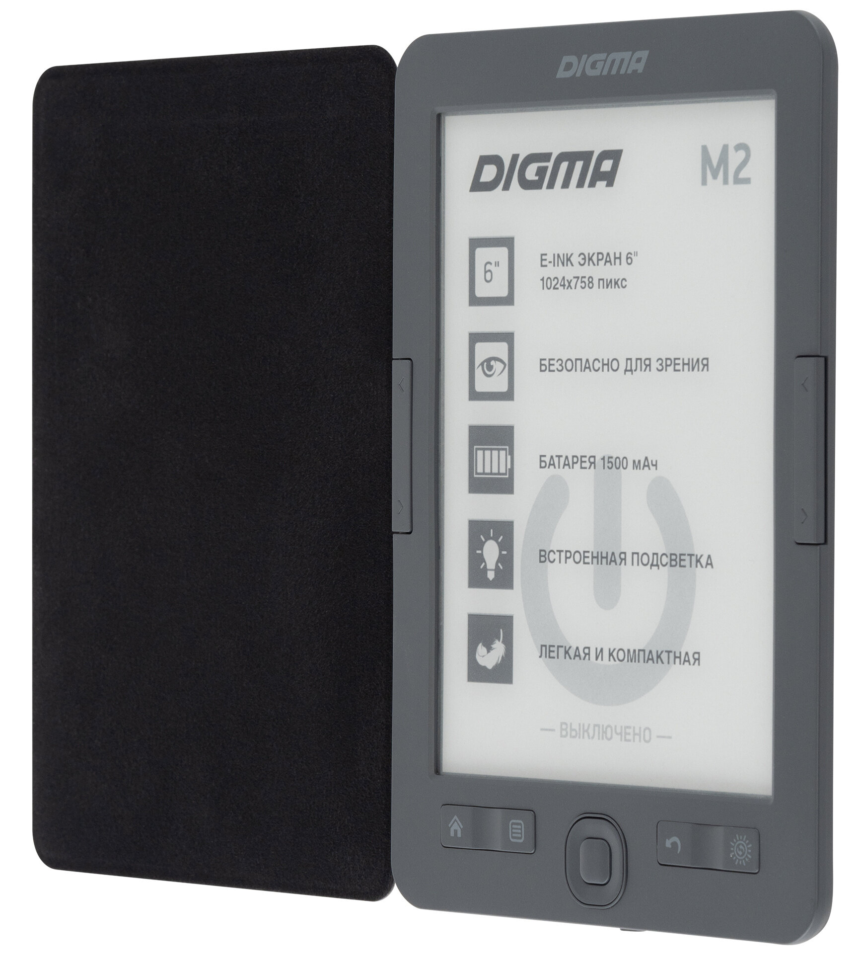 Купить Электронная книга Digma M2 6" E-ink HD 758x1024 600MHz 128Mb4GbSDmicroSDHCподсветка дисплея темно-се