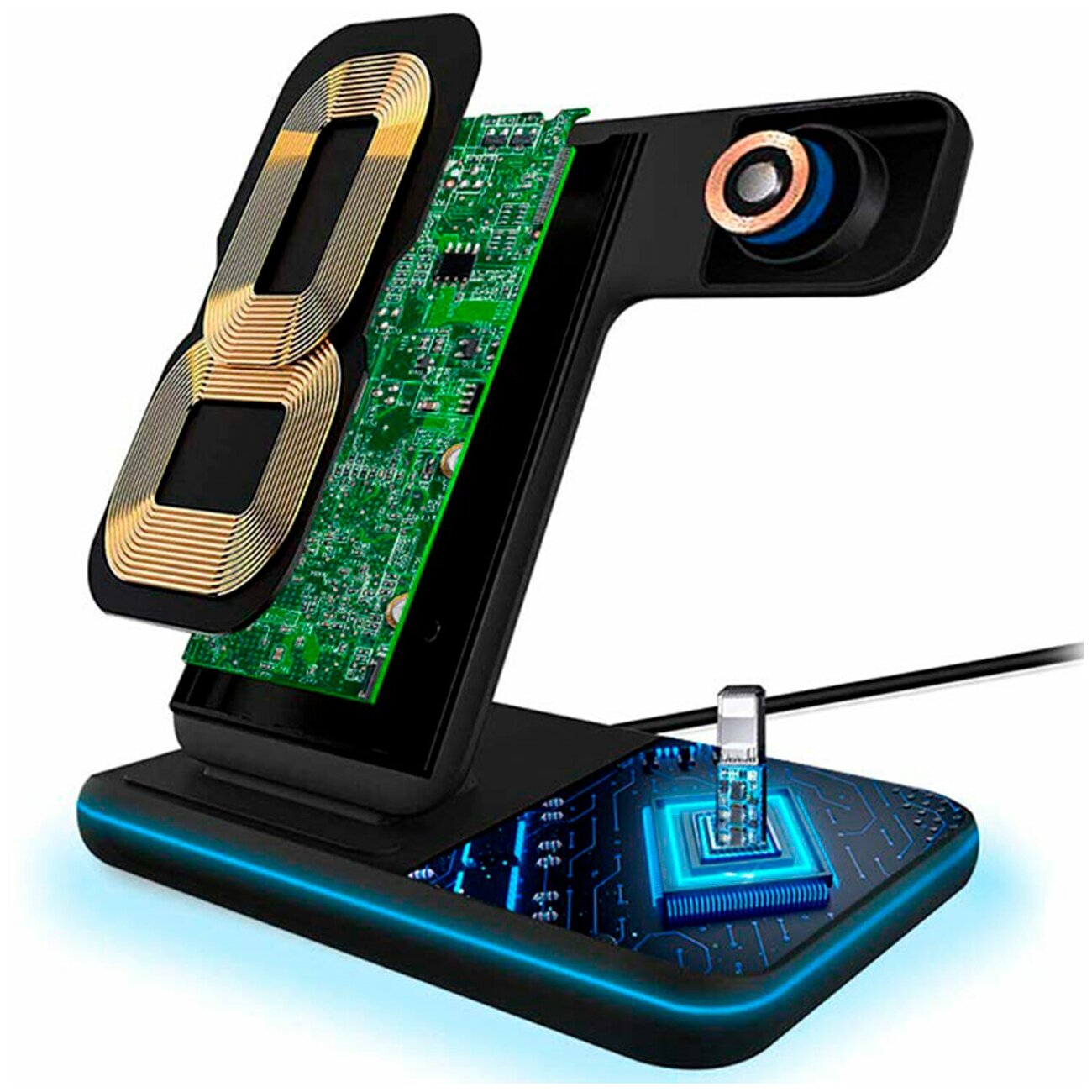 Беспроводная зарядка 3 в 1 для iPhone, Android, Apple Watch, AirPods, Черная