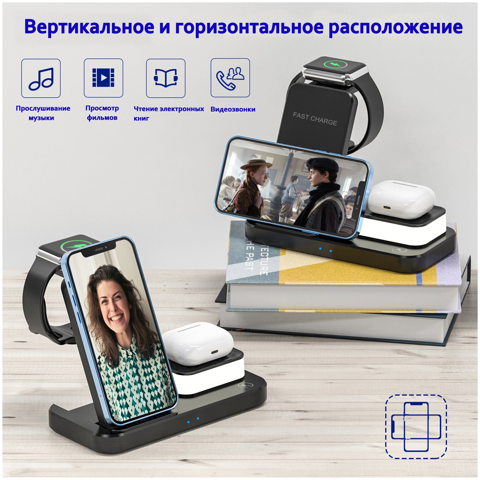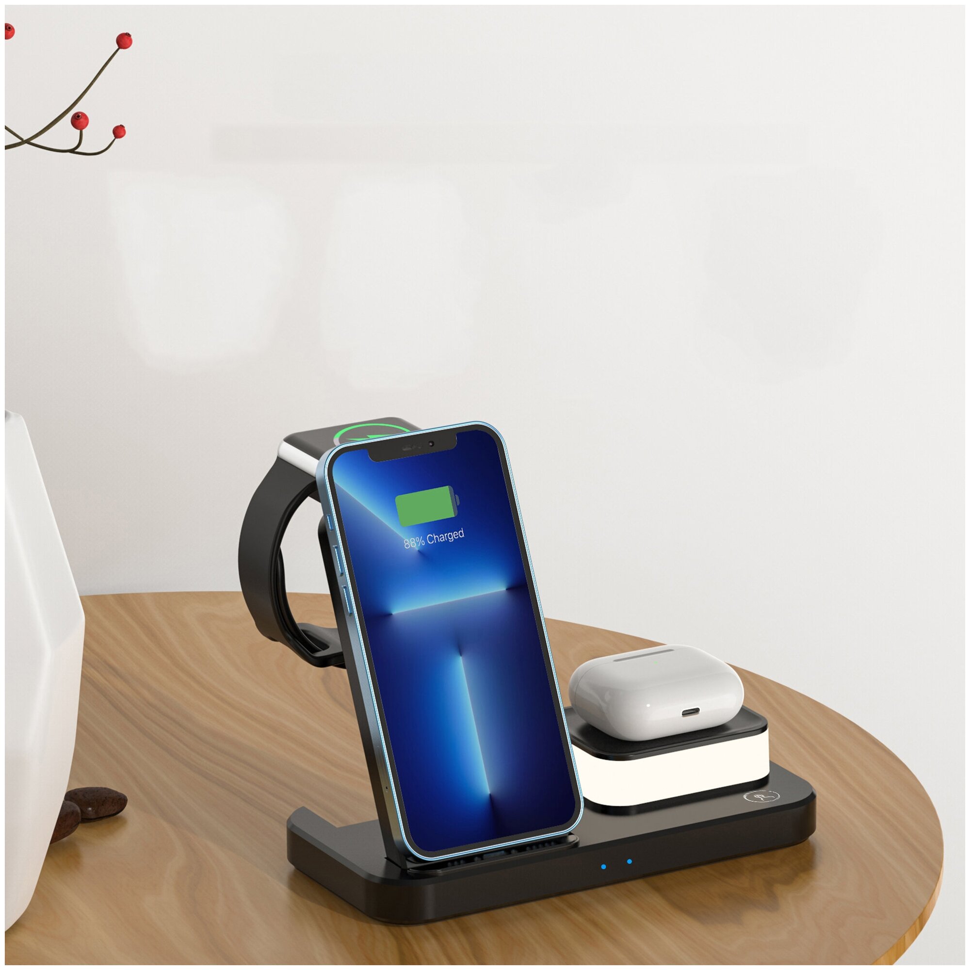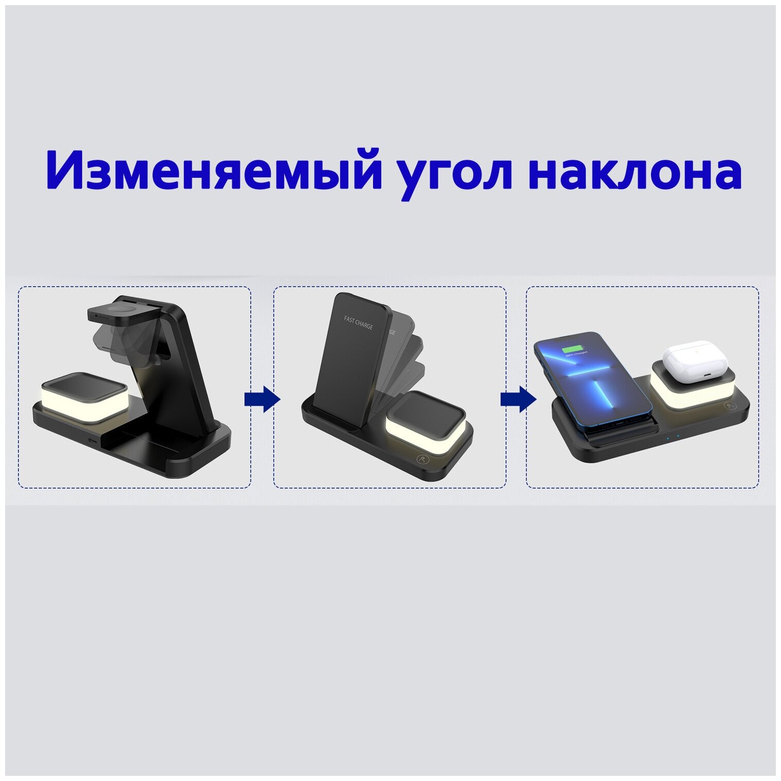 Беспроводная зарядная док-станция 4 в 1 для iPhone/iWatch/AirPods/ночник ABK-C500, PD/QC 3.0, черный интересное: