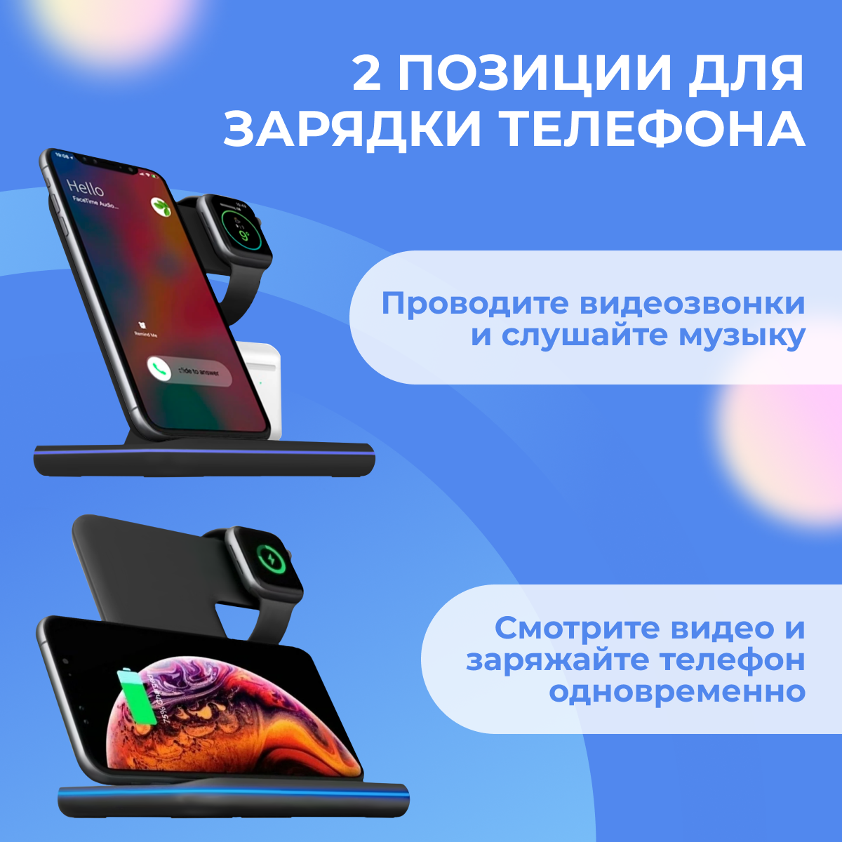 Беспроводная зарядка док-станция 3 в 1 для Apple iPhone, AirPods, Apple Watch, Samsung, Huawei, Xiaomi, Tecno, Vivo