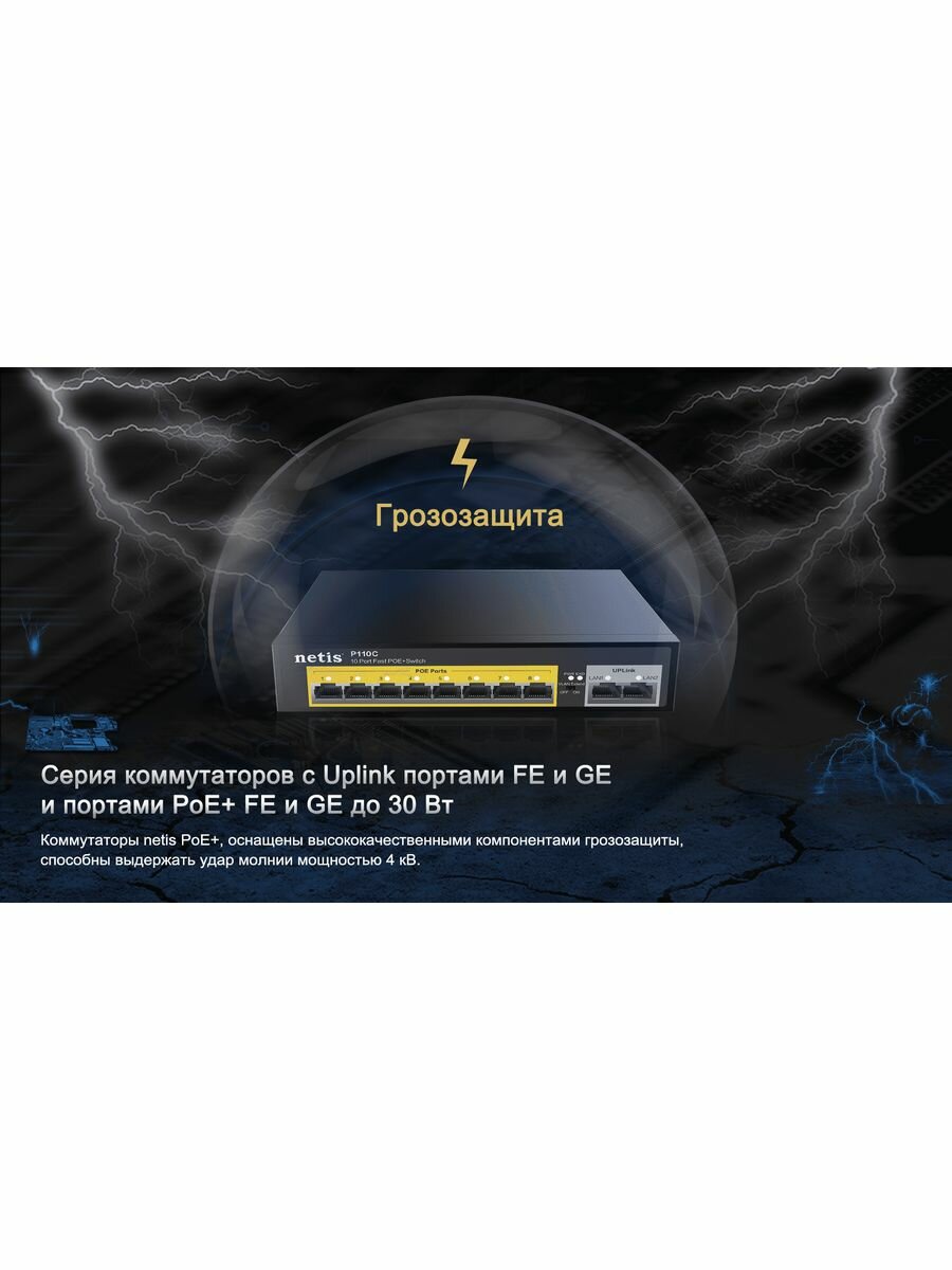 Коммутатор Netis P110C 10-портовый PoE+ коммутатор Fast Ethernet / 8*PoE+ 2 порта 802.3af/802.3at