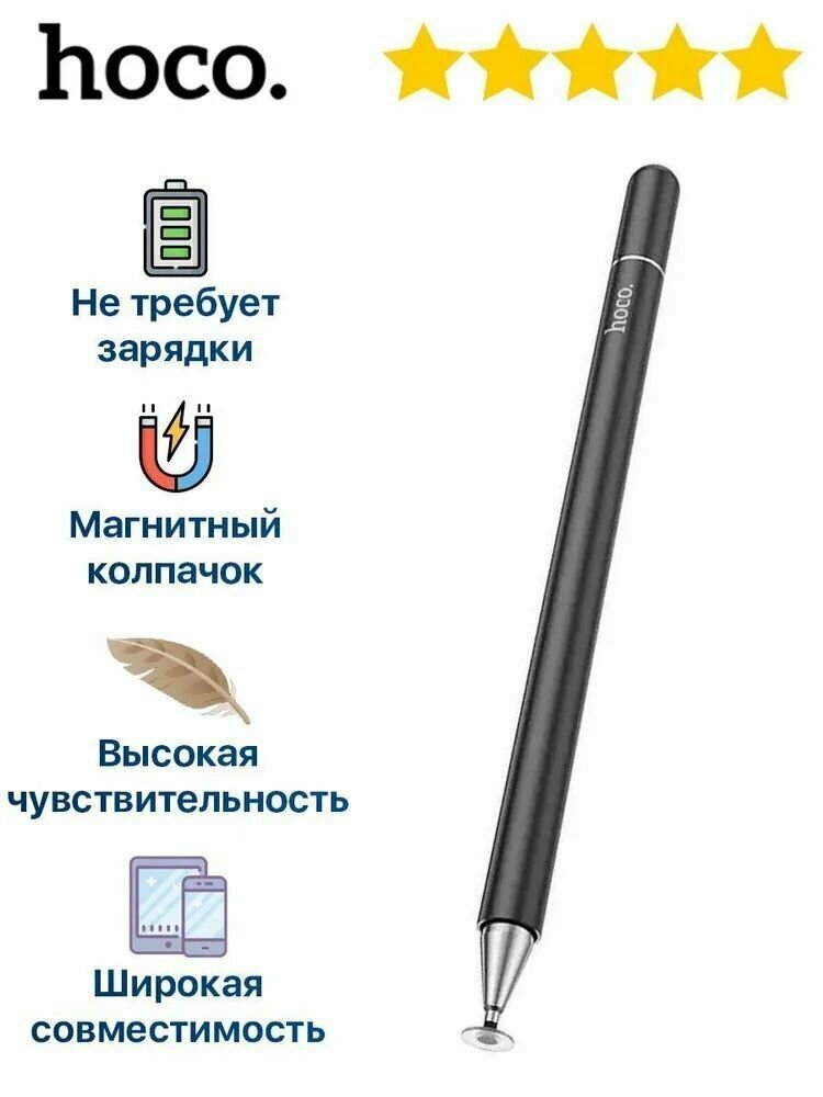 Стилус HOCO GM103 универсальный с двойным наконечником для сенсорных экранов Android/iPhone, iPad, Черный
