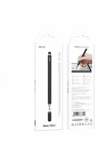Купить Стилус HOCO GM103 универсальный с двойным наконечником для сенсорных экранов Android/iPhone,iPad, Черный