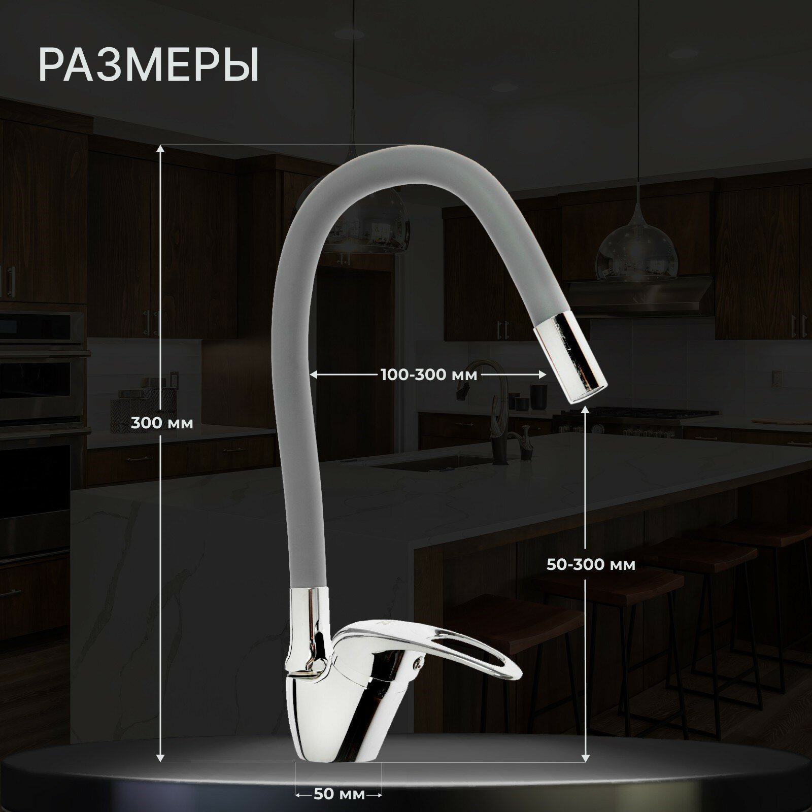 Смеситель для кухни ZEIN Z2075G, силиконовый излив, картридж 40 мм, латунь, серый/хром 7661190