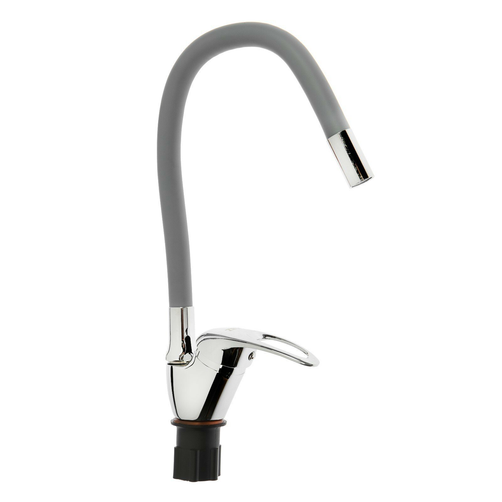Купить Смеситель для кухни Zein Z2075g, силиконовый излив, картридж 40 мм, латунь, серый/хром Zein 7661190 .