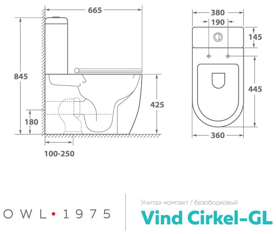 Унитаз-компакт OWL 1975 Vind Cirkel-GL OWLT190301 напольный безободковый с бачком OWLT190301/2 с микролифтом