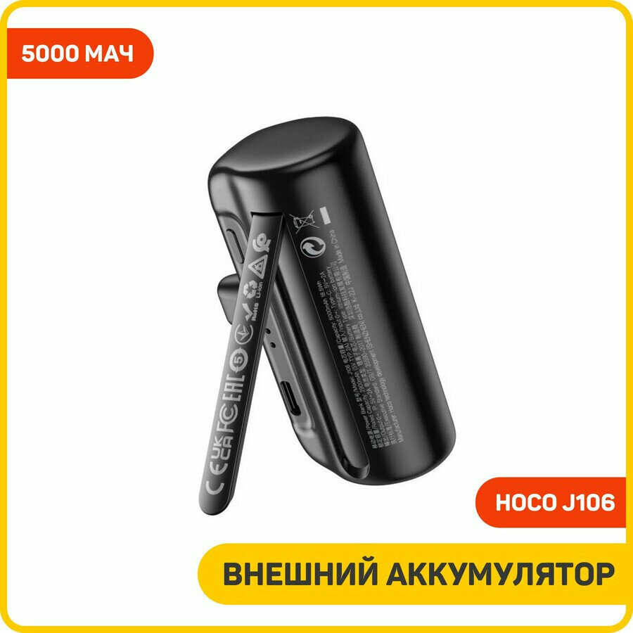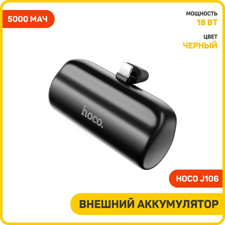 Универсальный Доп. Аккумулятор 5000mAh, J106, HOCO, выход: Lightning (5V/2A), белый