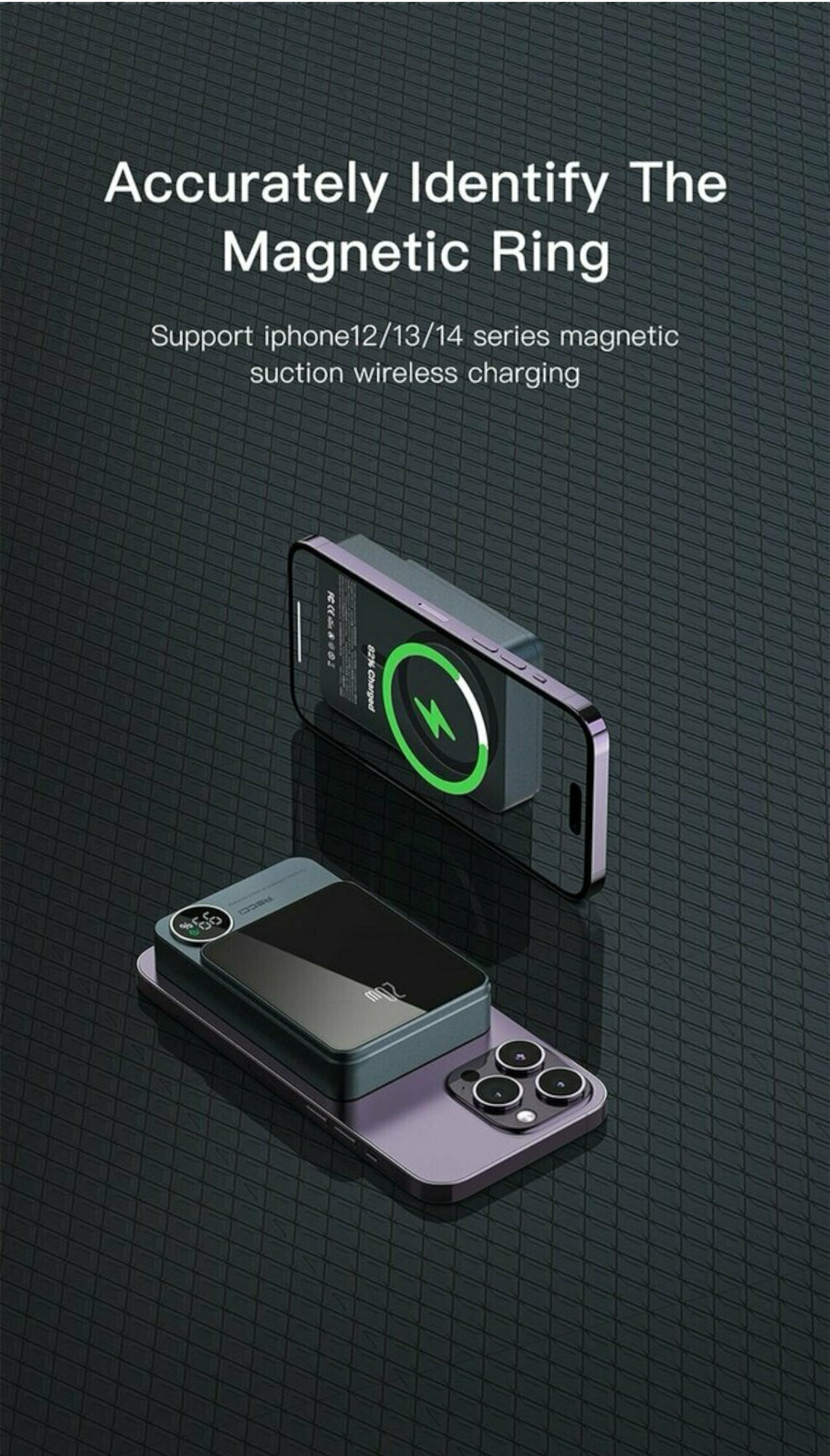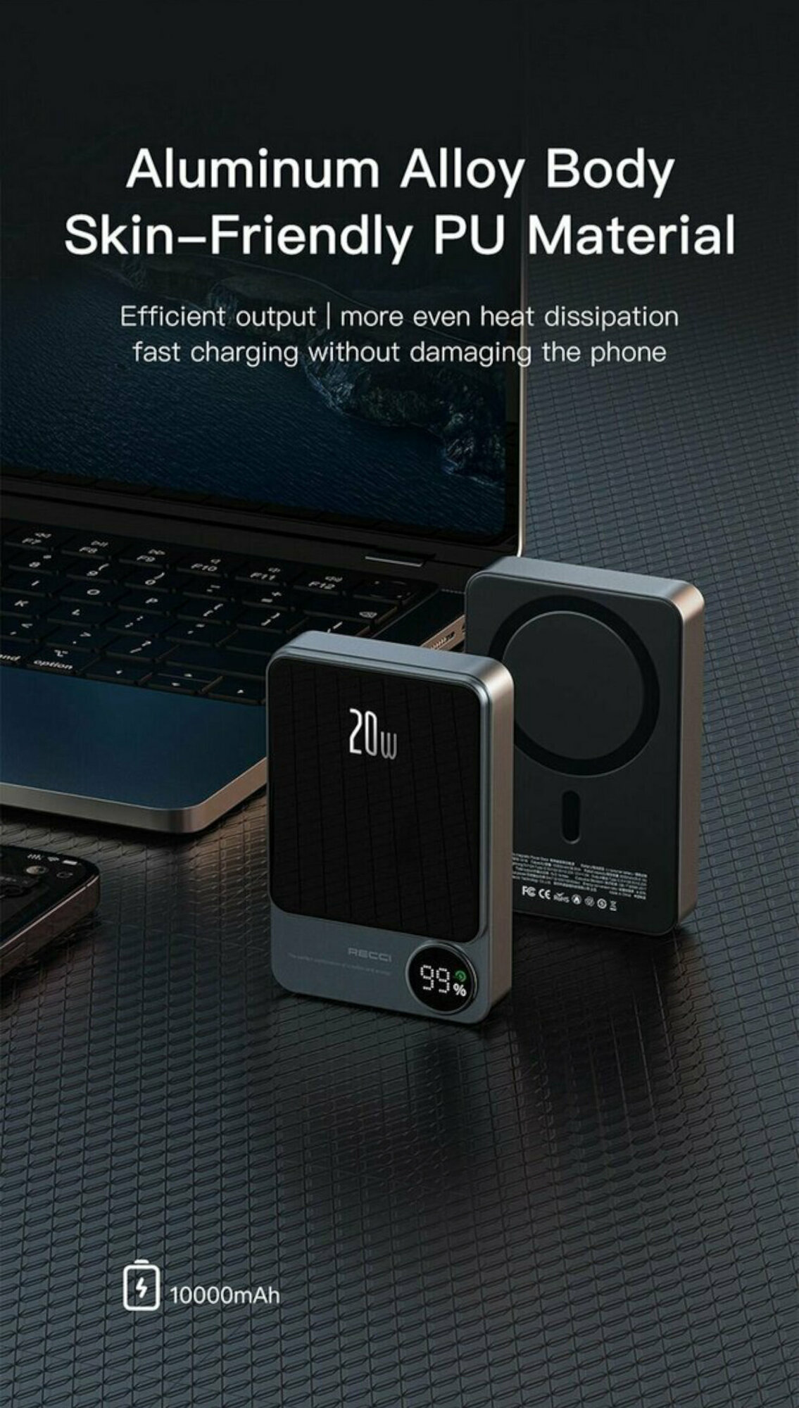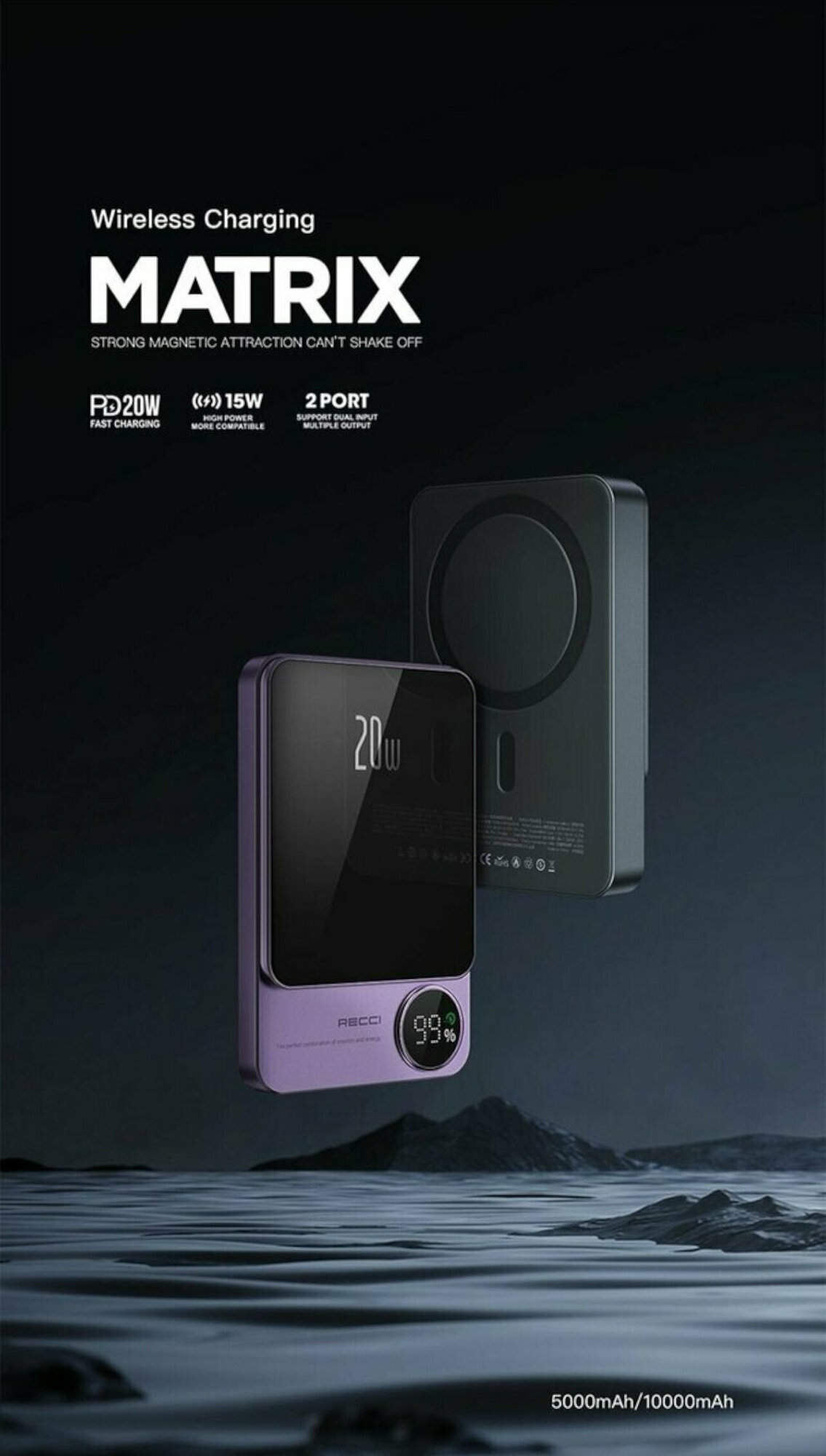 Внешний магнитный беспроводной аккумулятор RECCI Matrix, 10000 mAh, 20W, Cерый интересное: