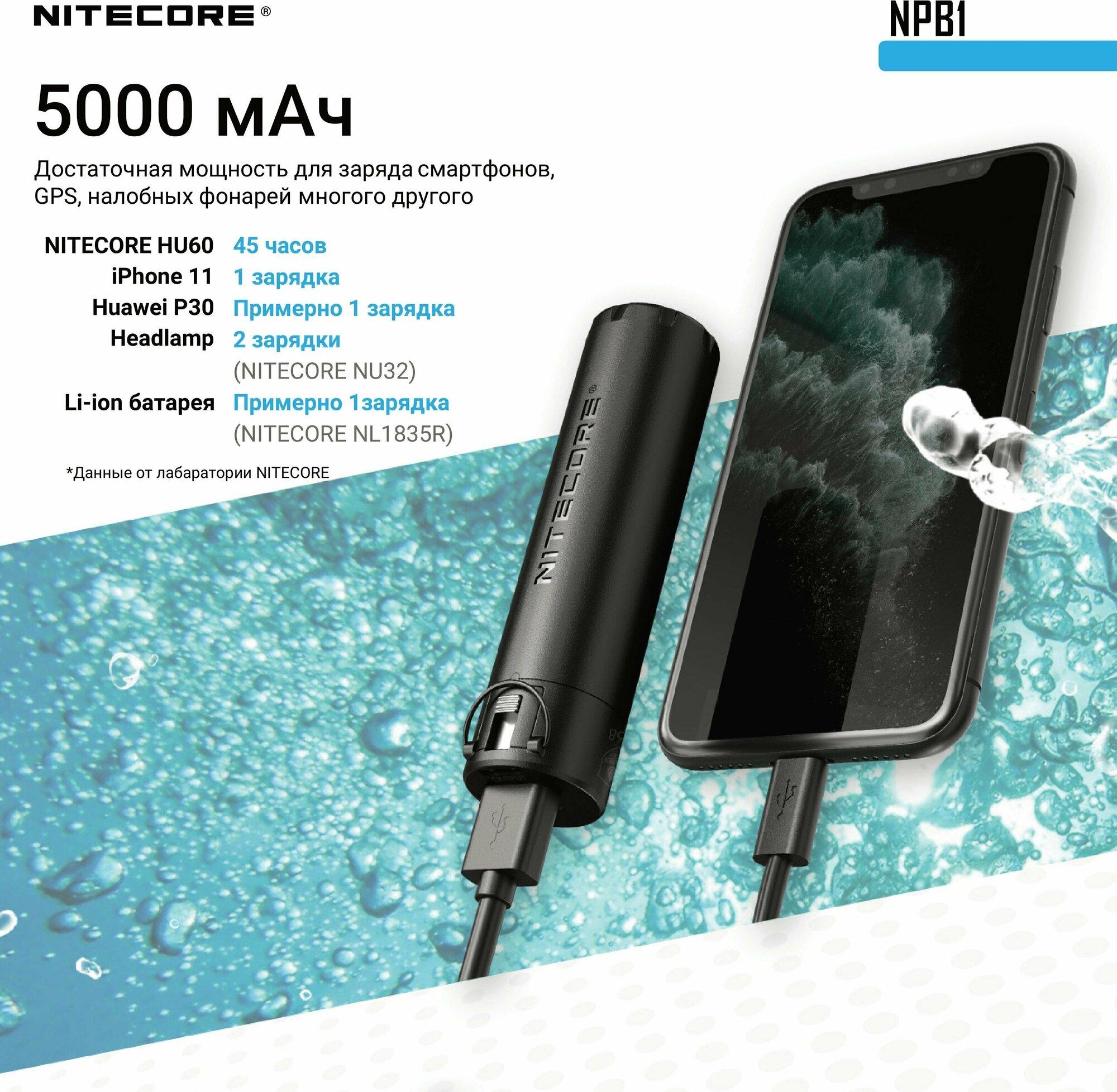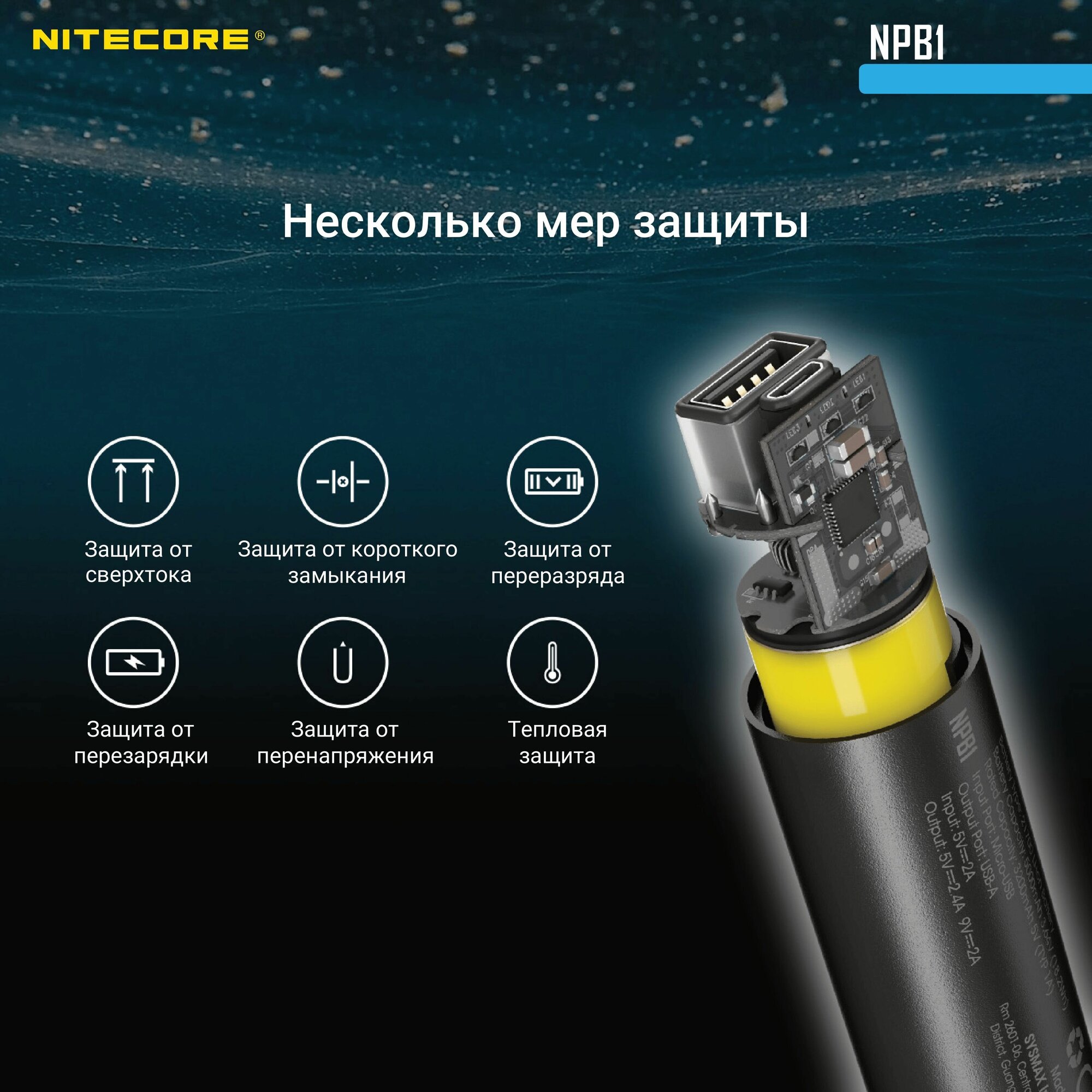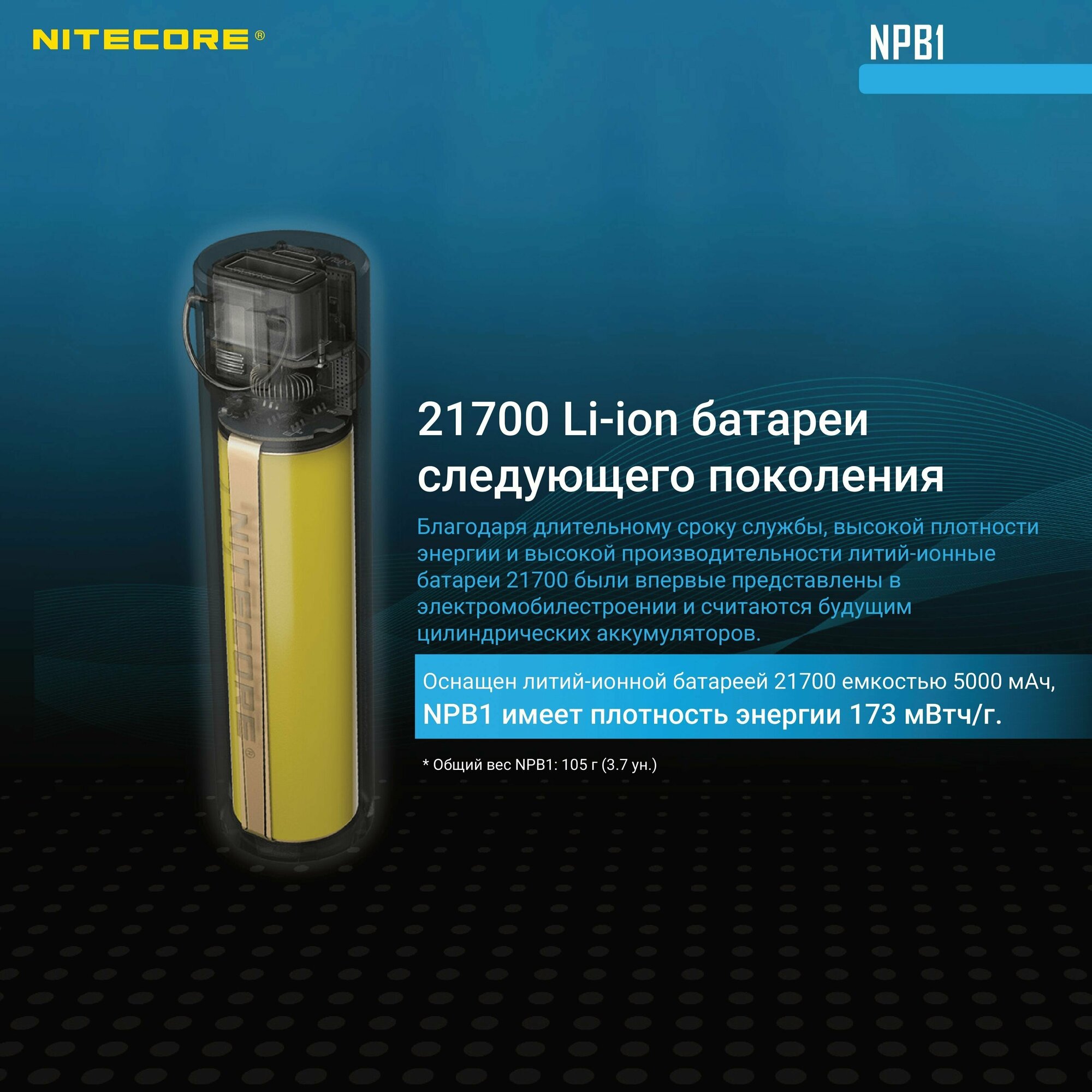 Внешний аккумулятор Nitecore NPB2 Power Bank IP68 Водонепроницаемый 2*21700 Li-ion 10000mAh 3.64v