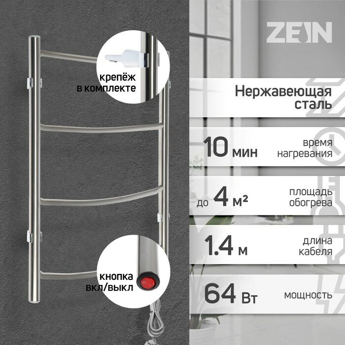 ZEIN Полотенцесушитель электрический ZEIN "Ребро", 400х600 мм, 4 перекладины