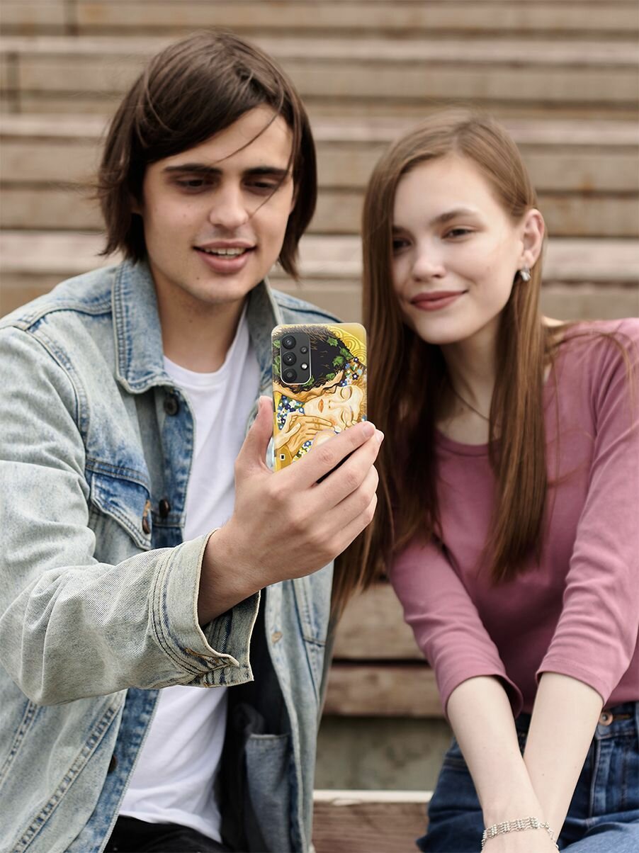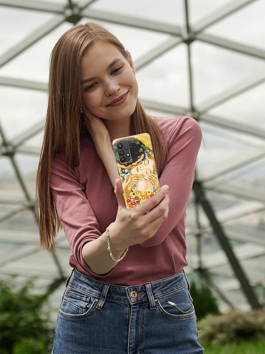 Ультратонкий силиконовый чехол-накладка для Samsung Galaxy A32 с принтом "Поцелуй" интересное: