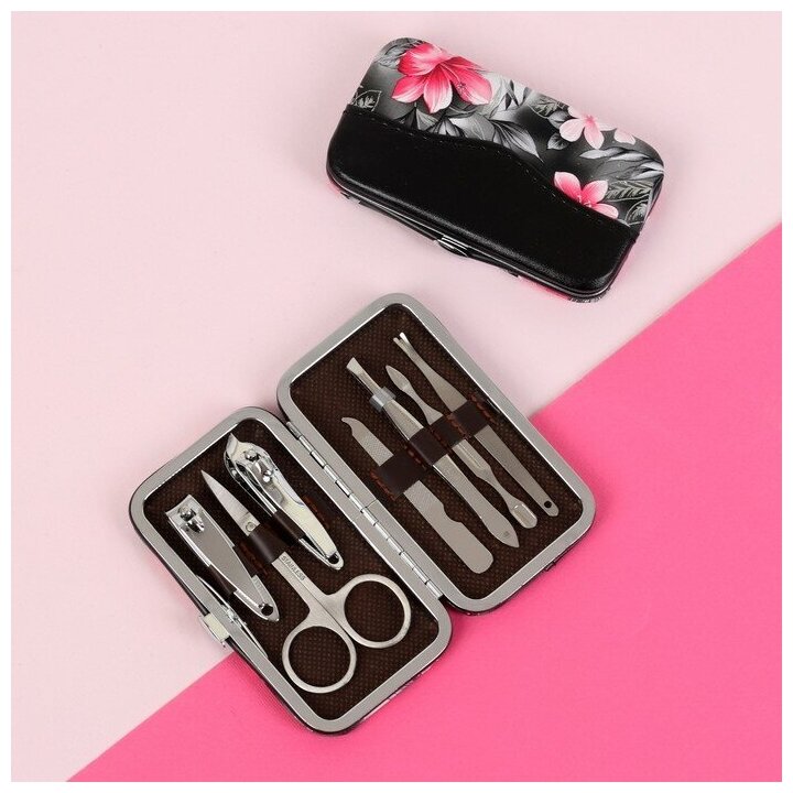 Queen fair Набор маникюрный «Цветы», 7 предметов, в футляре, цвет микс интересное: