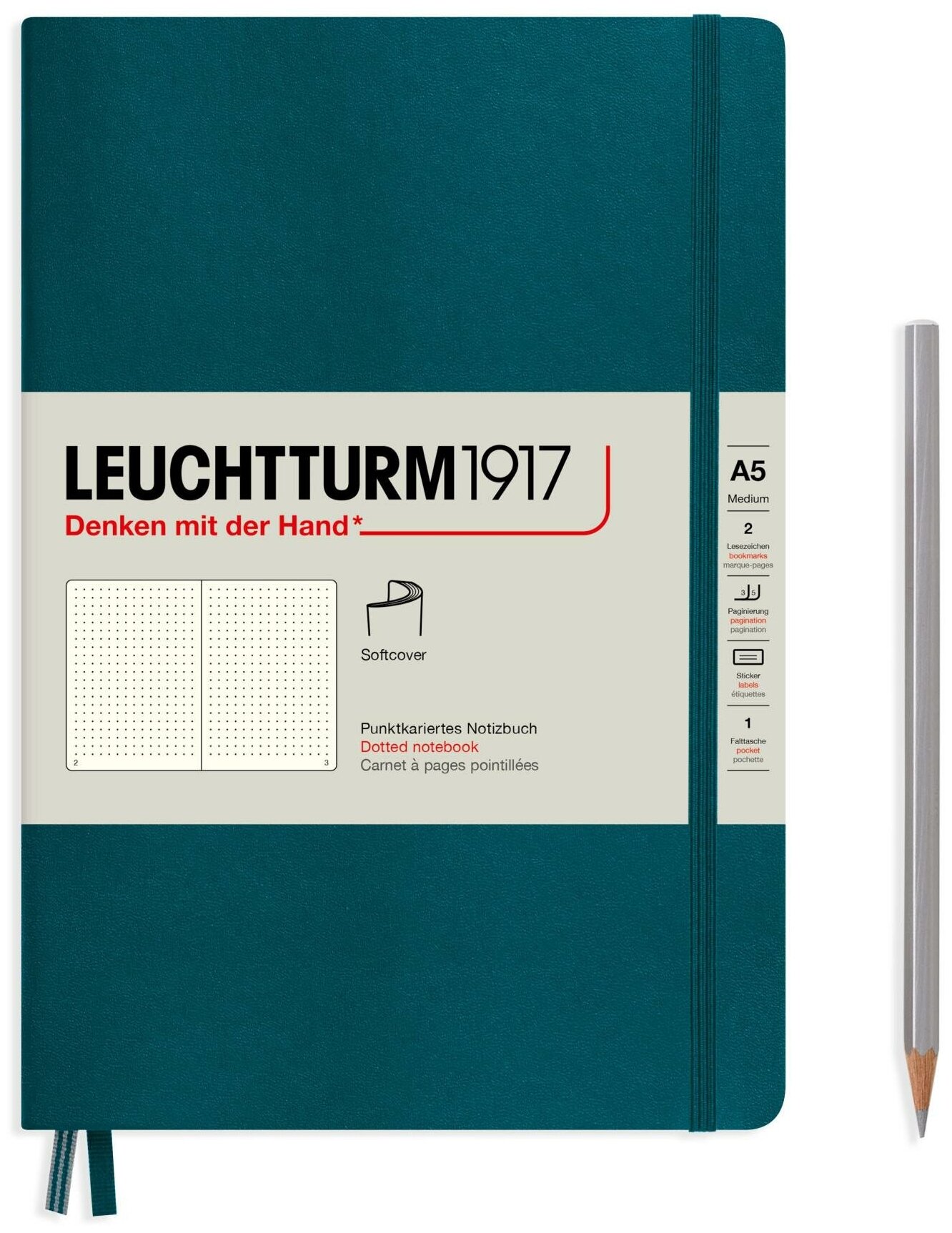 Записная книжка Leuchtturm А5, в точку, тихоокеанский зеленый, 123 страниц, мягкая обложка