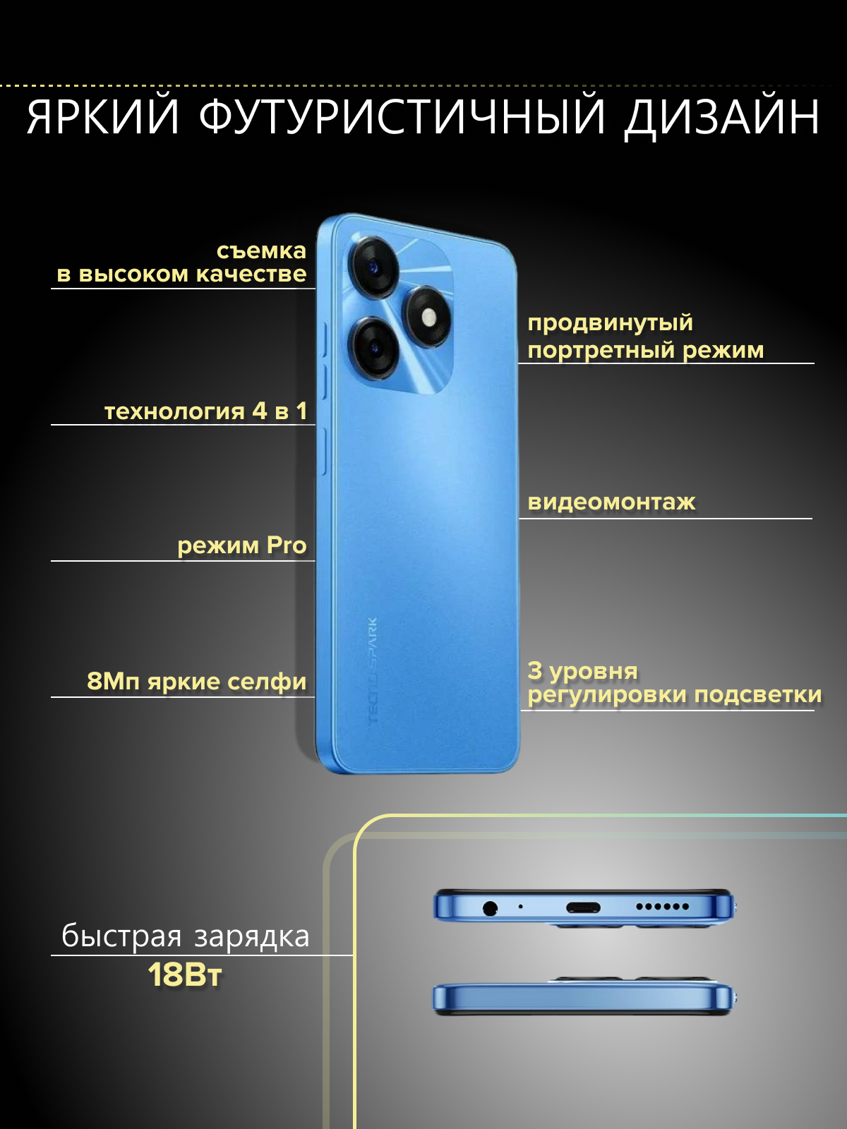 Смартфон TECNO Spark 10 8/128 ГБ, 2 nano SIM, синий