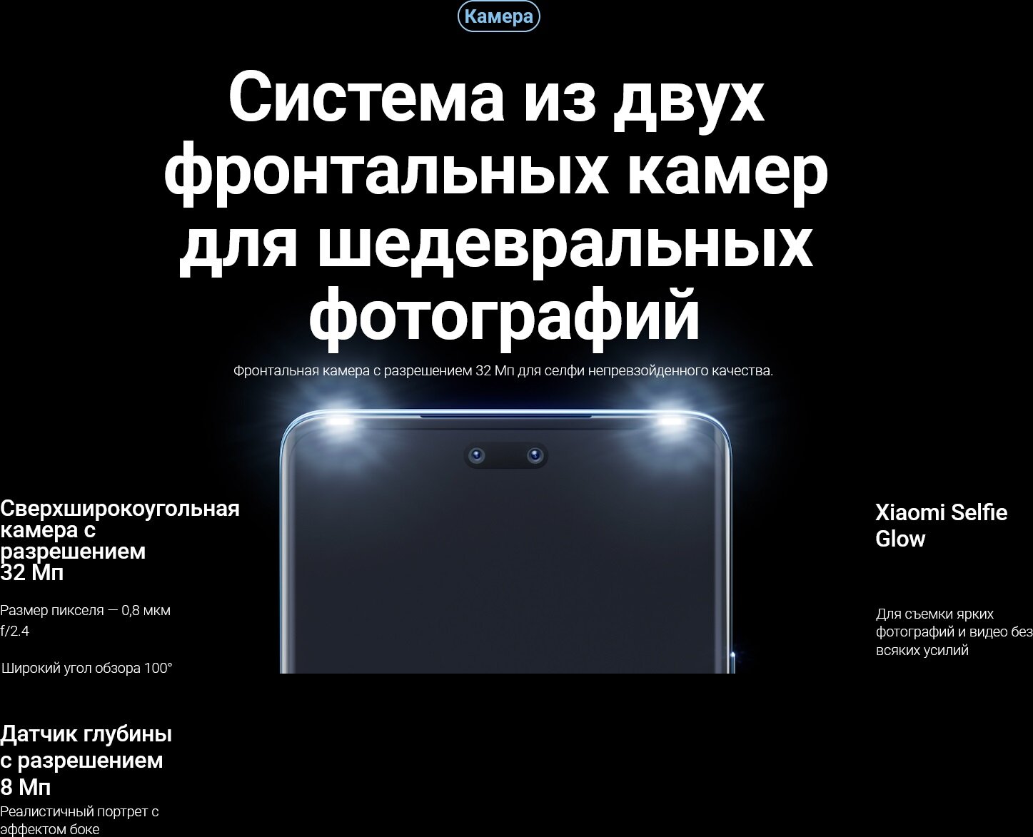 есть подсветка фронтальной камеры в 2 светодиода) |