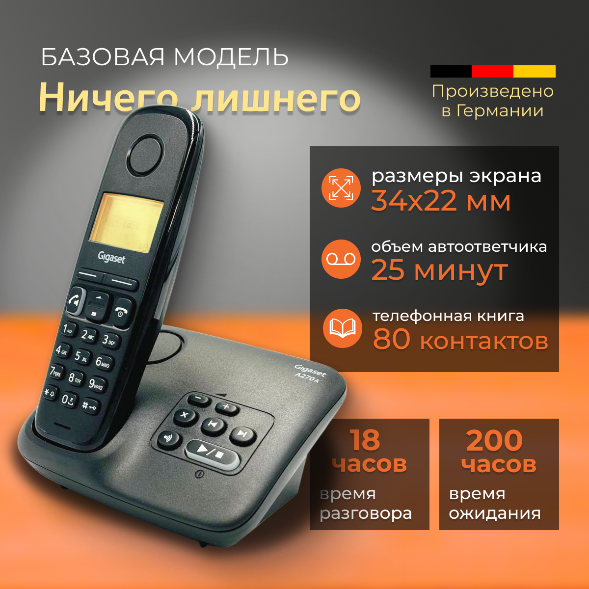 Радиотелефон с автоответчиком DECT Gigaset A270A DUO Black / телефон домашний беспроводной / две трубки