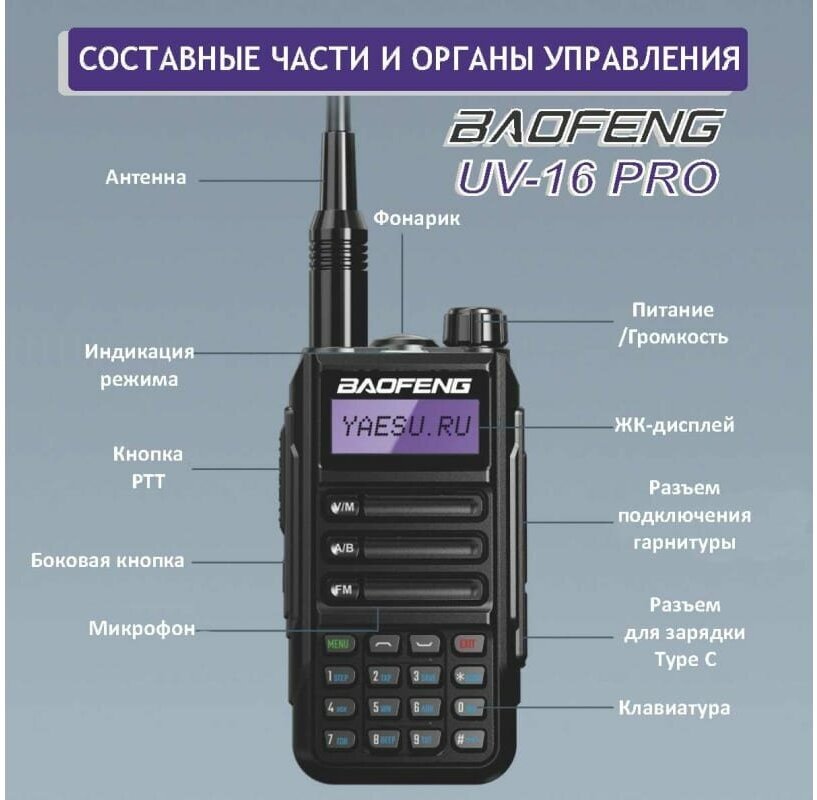 Baofeng Рация UV-16 PRO /1800мАч ( 136-174/400-480) МГц, черный 00029154 интересное: