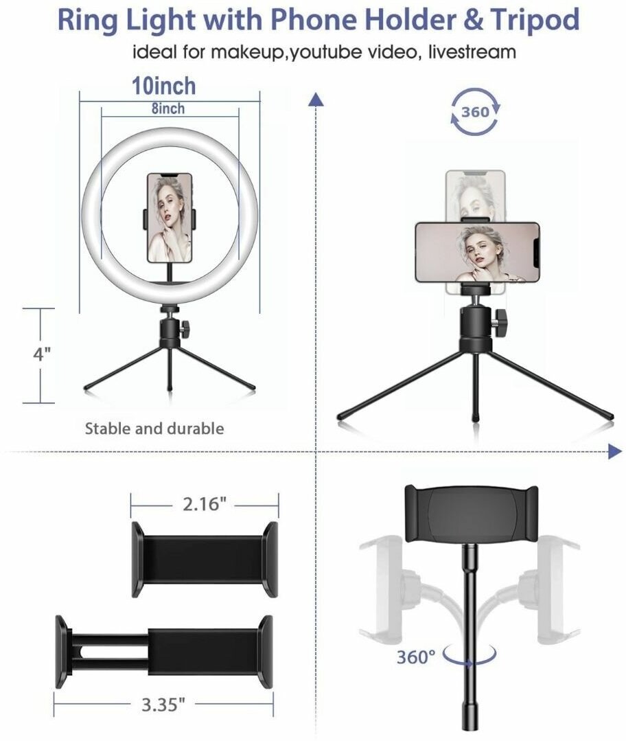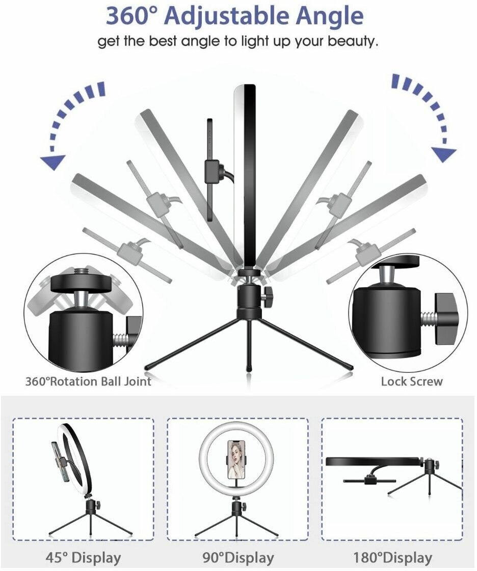 Купить Диодная кольцевая лампа с настольным штативом и креплением под телефон 26 см