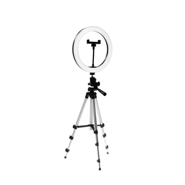 Светодиодная кольцевая лампа на штативе LuazON SNP098, 10" (26 см), 20 Вт, штатив 27-85 см интересное: