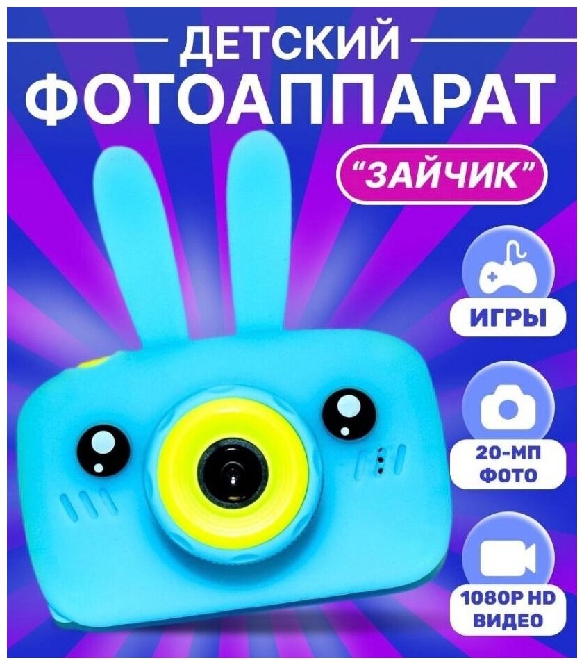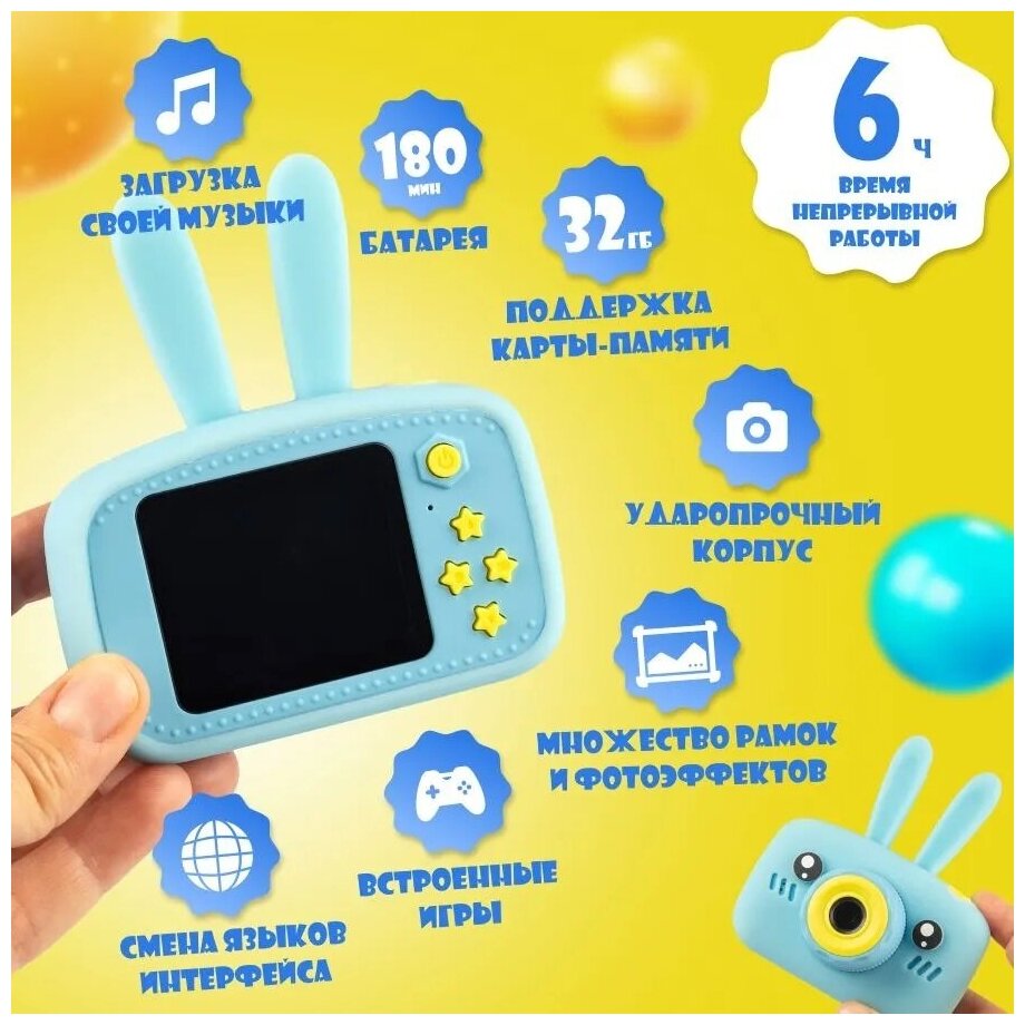 Детский развивающий цифровой фотоаппарат CAPTURE THE MOMENT Зайчик с ушками /Мини-цифровая камера/Blue интересное: