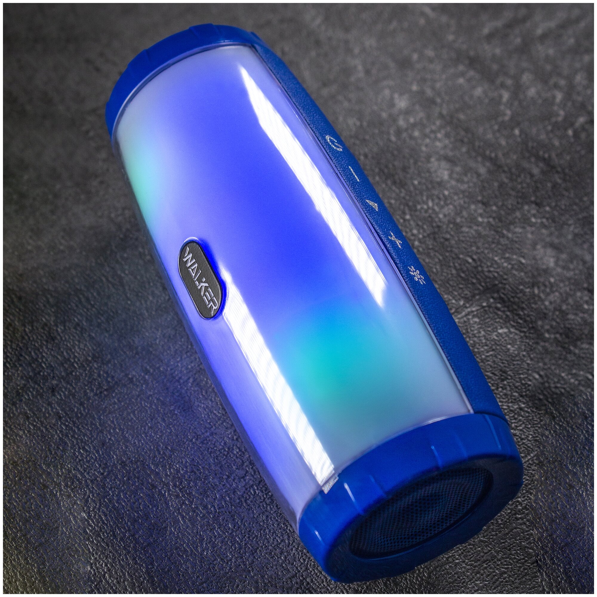Беспроводная портативная колонка с подсветкой Bluetooth 5.0, WALKER, WSP-120, 5Вт*2, синяя / акустическая музыкальная система с aux и usb кабелями