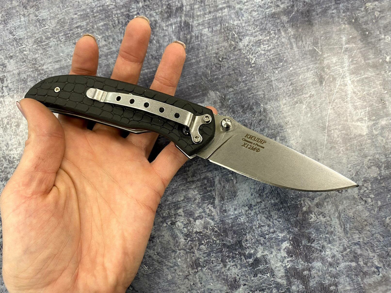 Складной нож Ирбис, сталь Х12МФ, рукоять эластрон интересное: