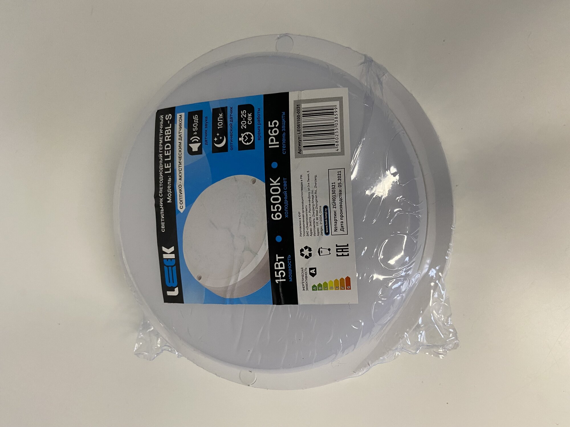 Светильник светодиодный герметичный с оптико-акустическим датчиком LE LED RBL-S 15W 6500K (холодный свет) (1шт.)