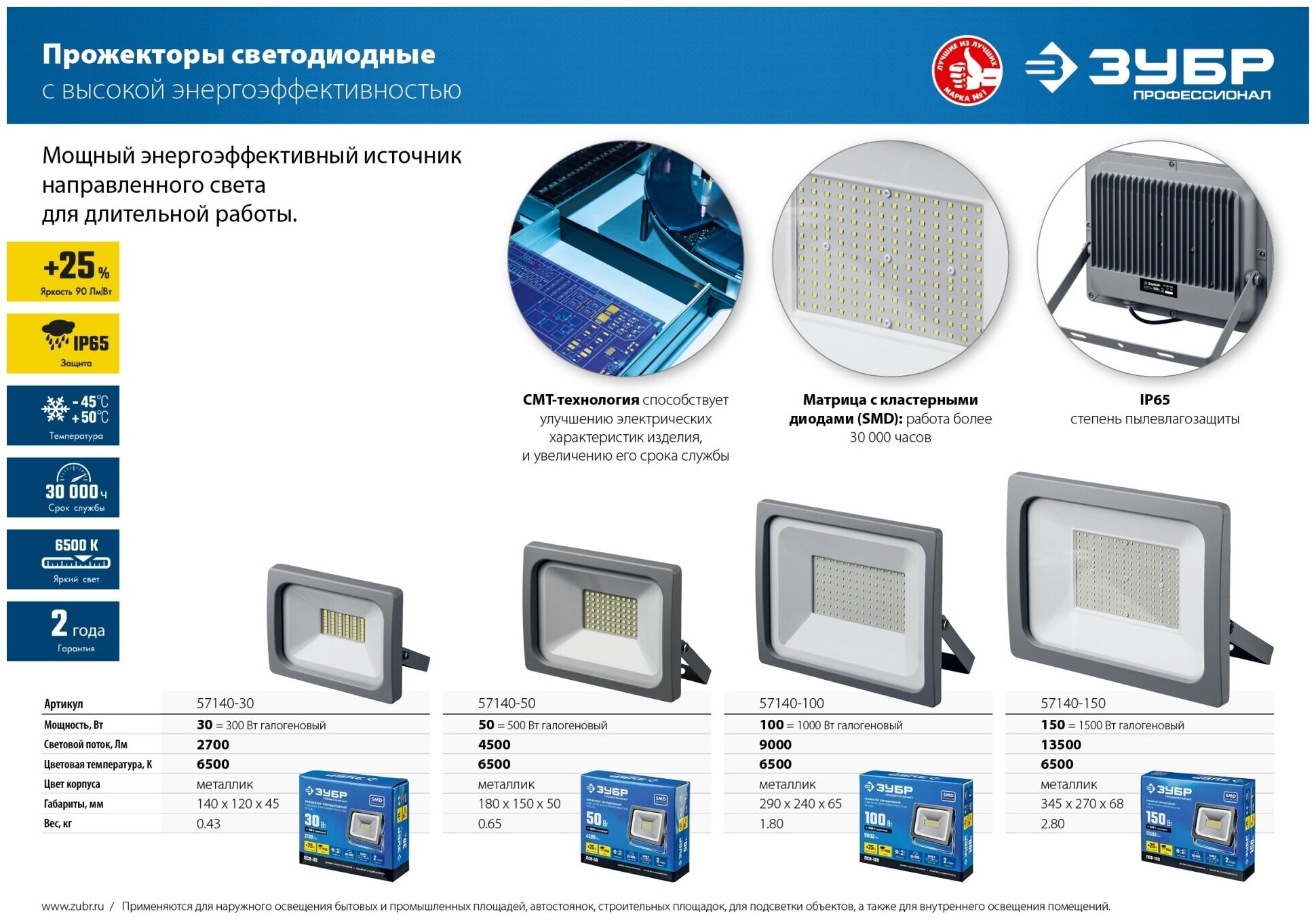Светодиодный прожектор ЗУБР 30 Вт, ПСВ-30, Профессионал интересное: