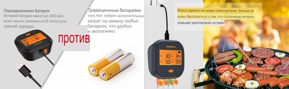 СохранитьЭлектронный BBQ термометр INKBIRD IBBQ-4T, с 4 щупами, Wi-Fi интересное: