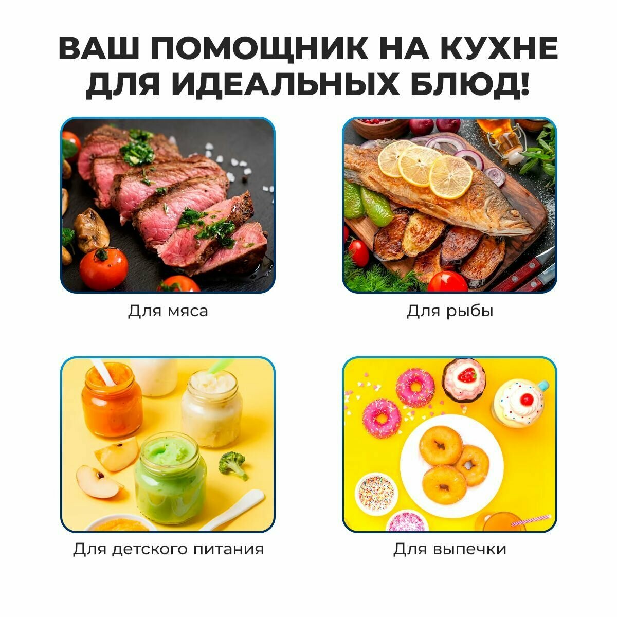 Кулинарный термометр электронный со щупом из нержавеющей стали, термометр для еды, мяса, вина, провод 1 метр / таймер кухонный