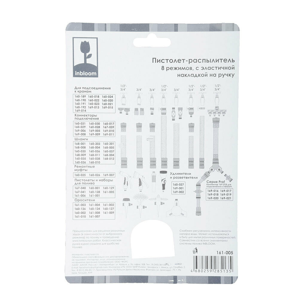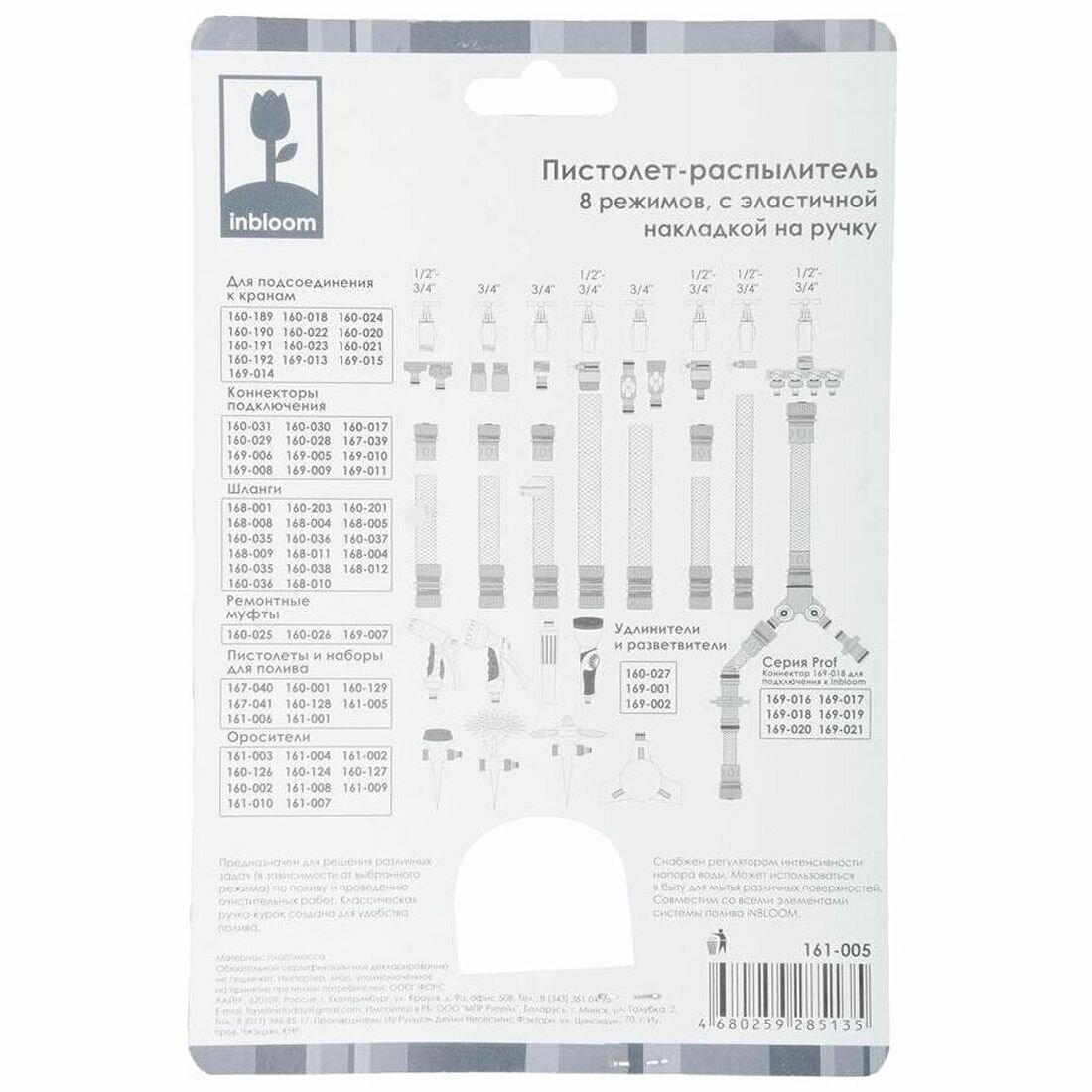 Inbloom Пистолет-распылитель, 8 режимов, с эластичной накладкой на ручку, пластик 161-005 .