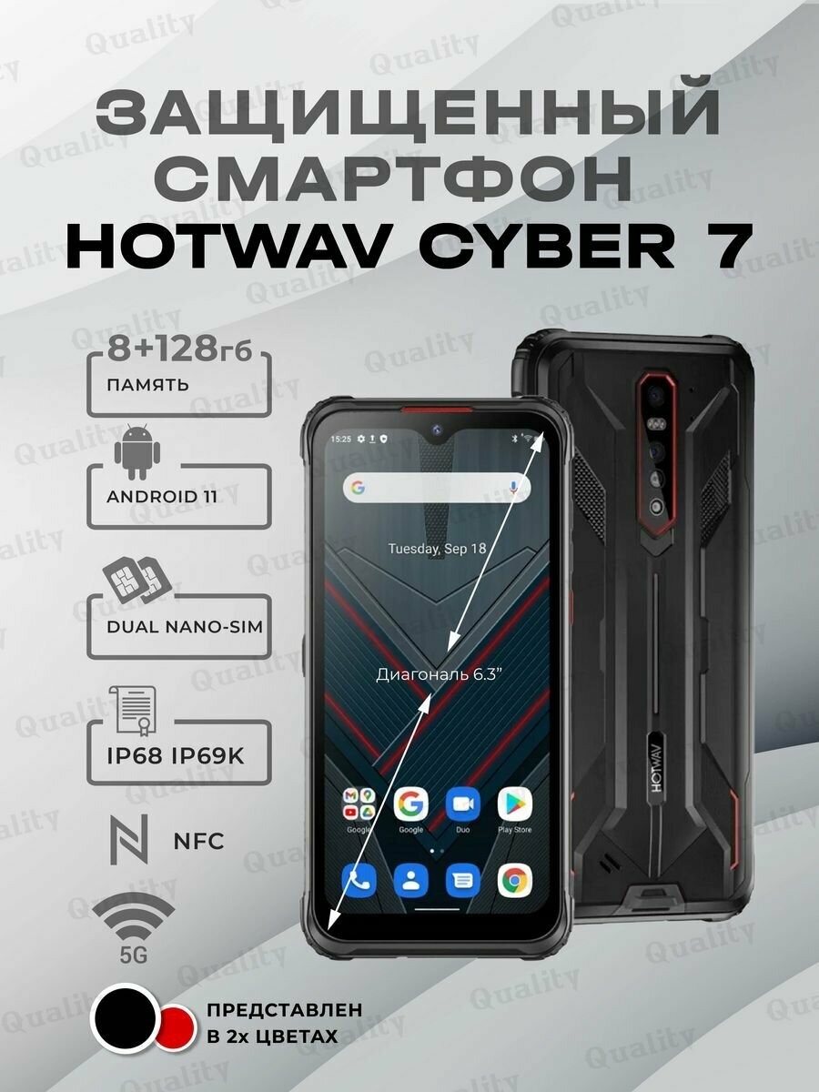 Смартфон HOTWAV Cyber 7 5G 8/128 ГБ, 2 SIM, черный