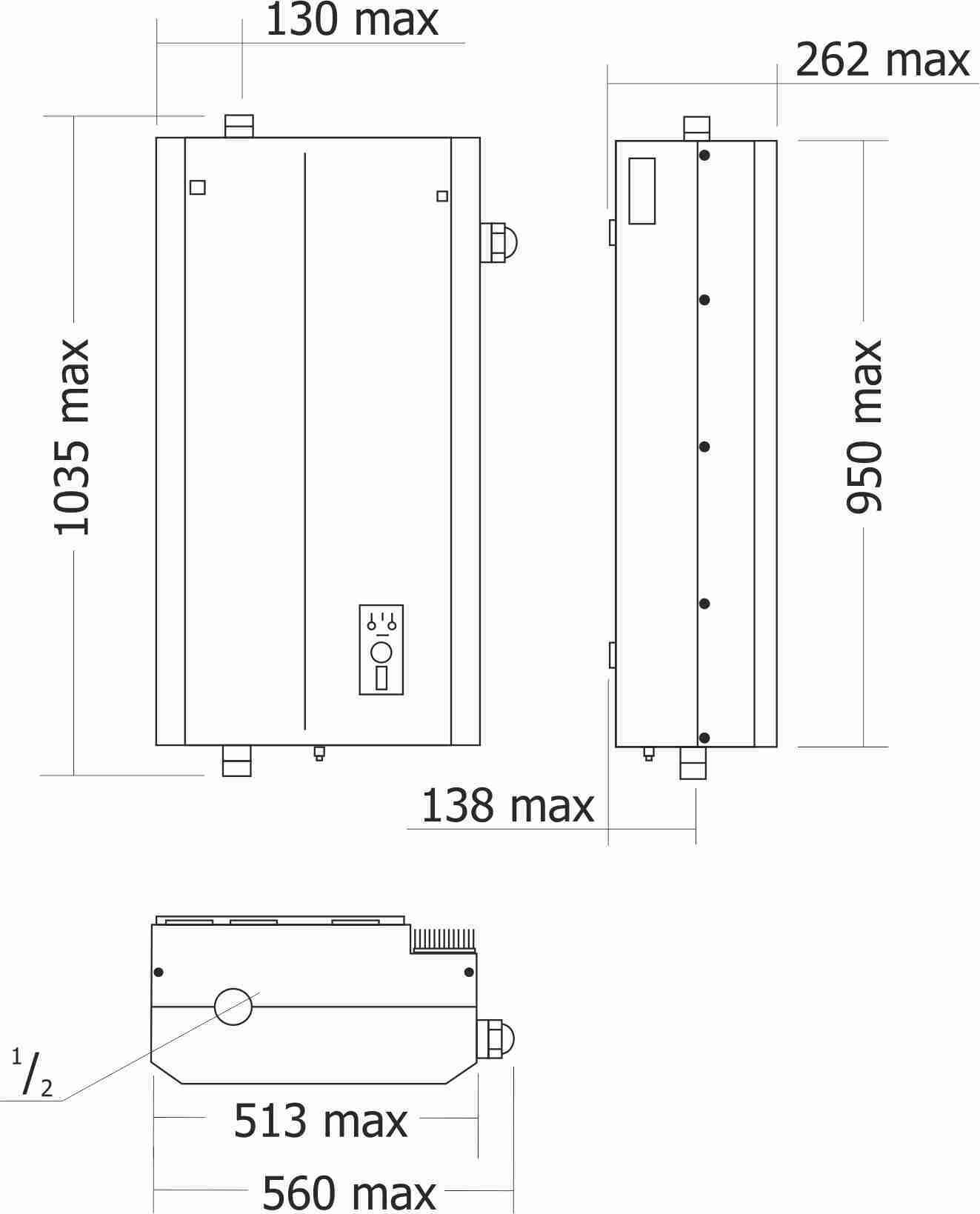 Котел электрический настенный рэко П - 70 кВт (380В, 3 ступени мощности - 24/42/72 кВт)