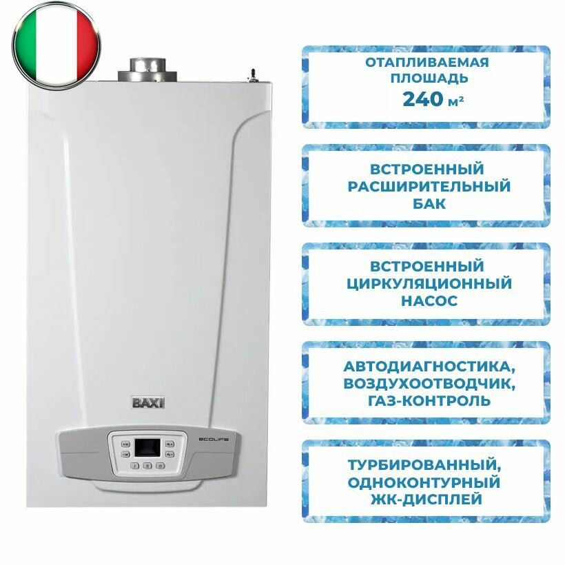 Настенный газовый котел Baxi ECO Life 1.24F, одноконтурный (закрытая камера) интересное: