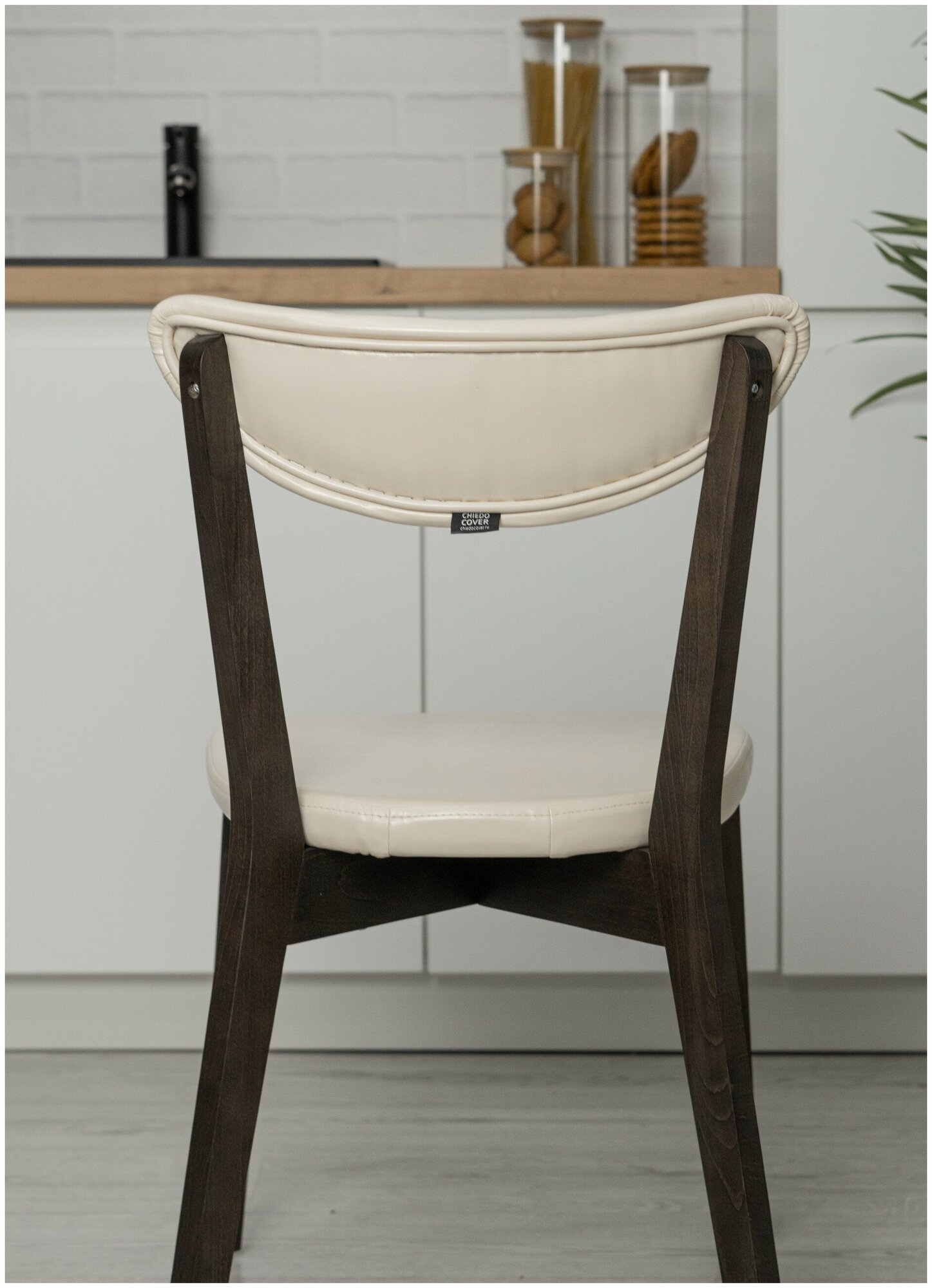 Деревянный стул для кухни СhiedoCover RIGA обивка - светло-бежевая экокожа, каркас - морилка темный орех