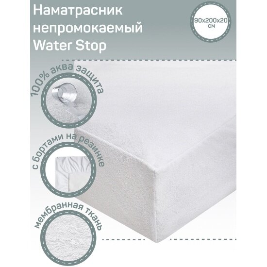 Наматрасник непромокаемый Water Stop с бортами на резинке 200х90 Белый
