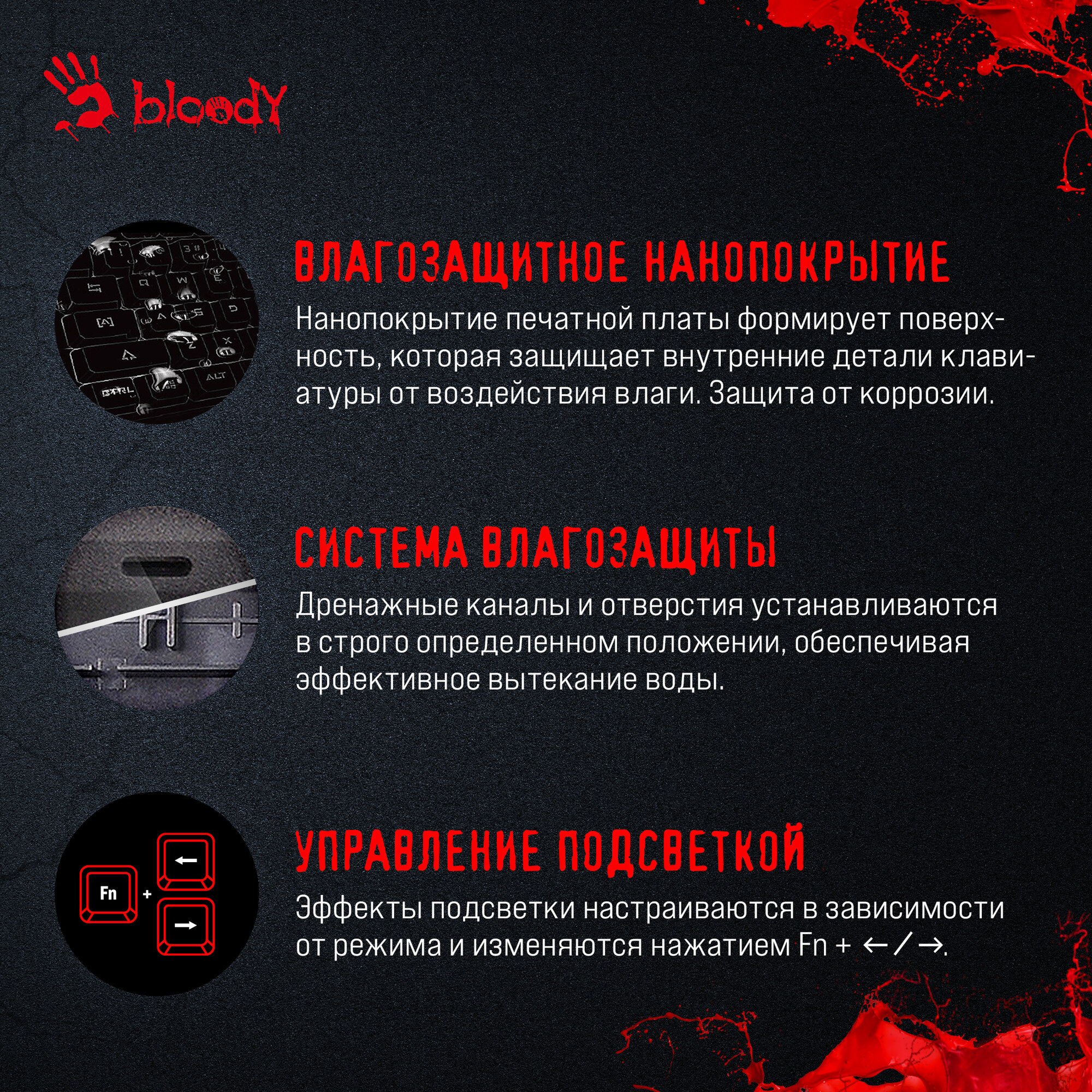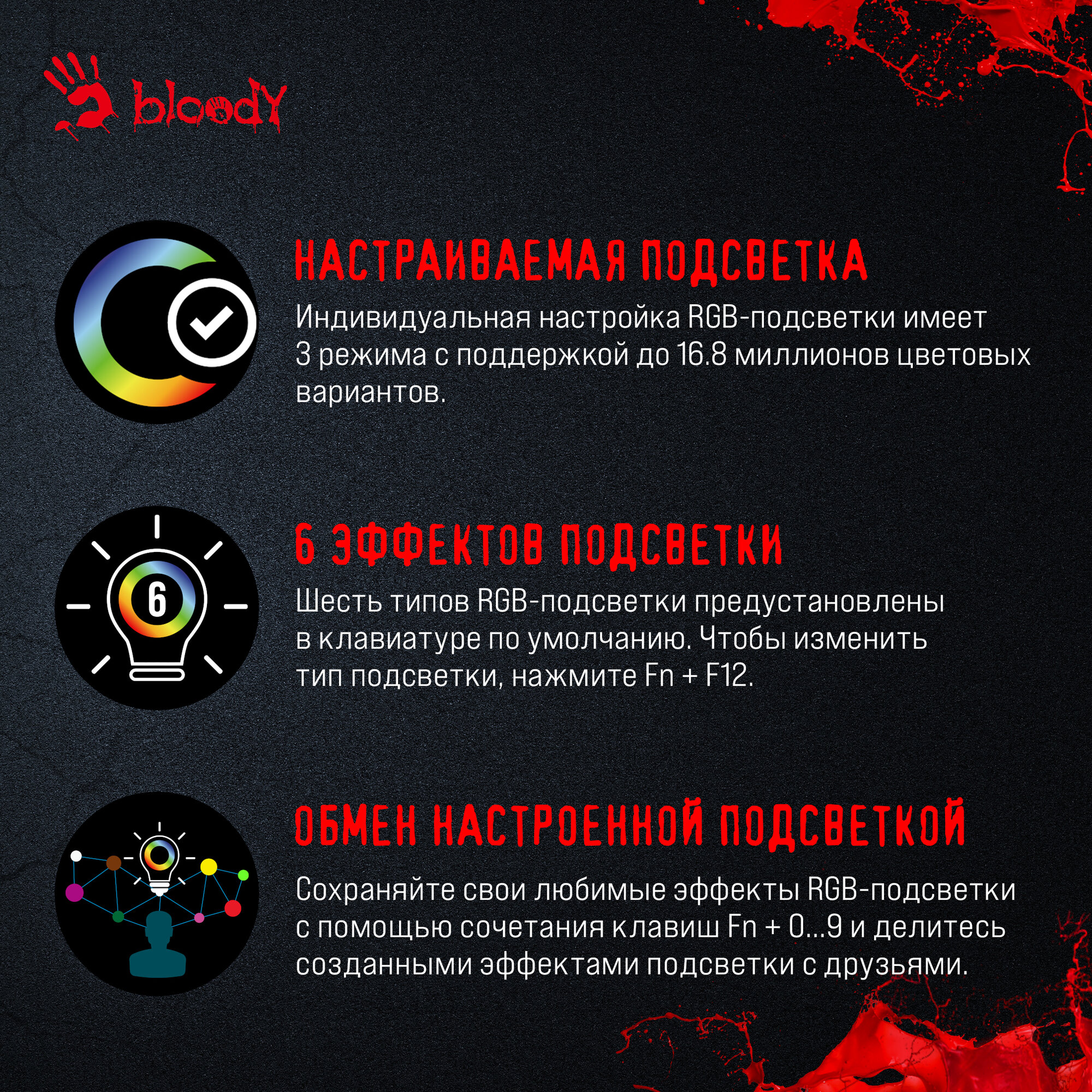 Клавиатура A4Tech Bloody B810R Battlefield, русские и английские буквы, рисунок (b810r (battlefield)) интересное: