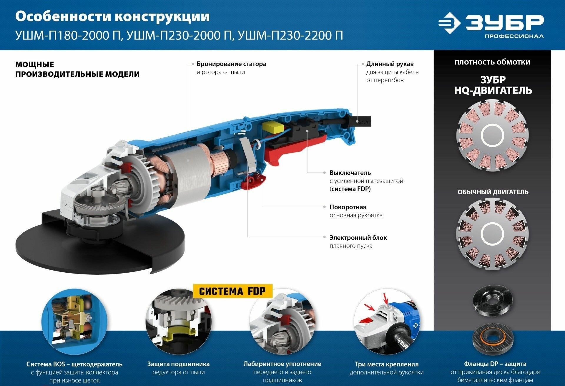 УШМ ЗУБР Профессионал, УШМ-П230-2000 п, 230 мм, 2000 Вт интересное: